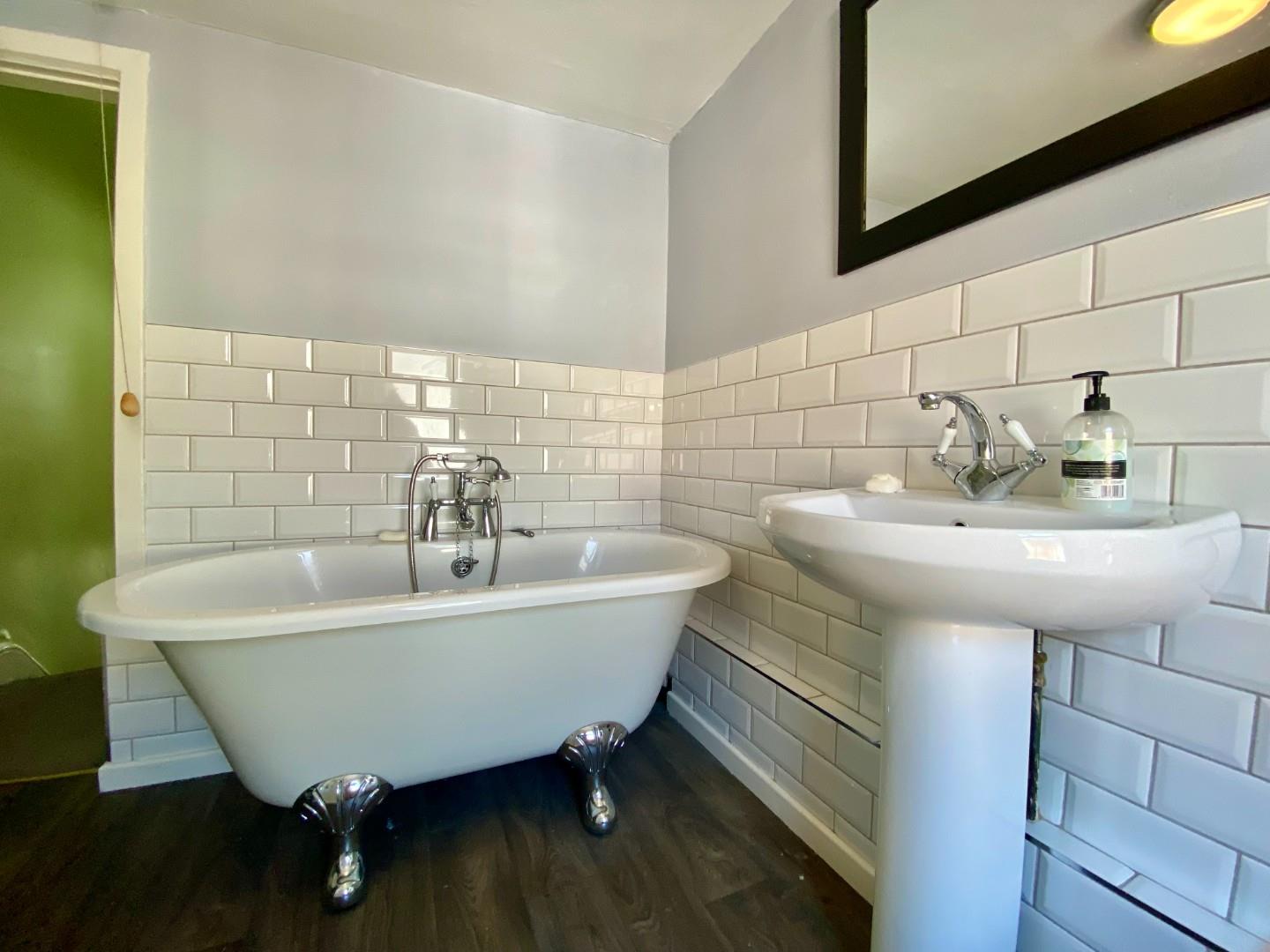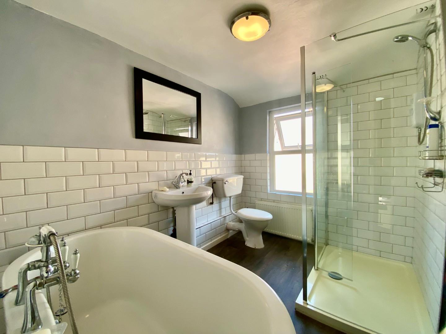 The property itself features a welcoming entrance hall, a spacious front lounge, a dining room with access to the yard, and a NEW rear kitchen on the ground floor. Upstairs, there are two double bedrooms and a large, modern family bathroom with a roll top bath and separate shower cubicle.