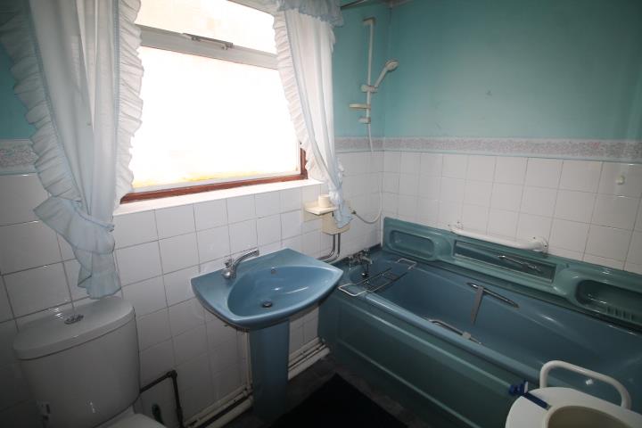 Bathroom suite comprising of panel bath, low level WC, wash hand basin. Tiled walls, radiator. Aluminium double glazed window.