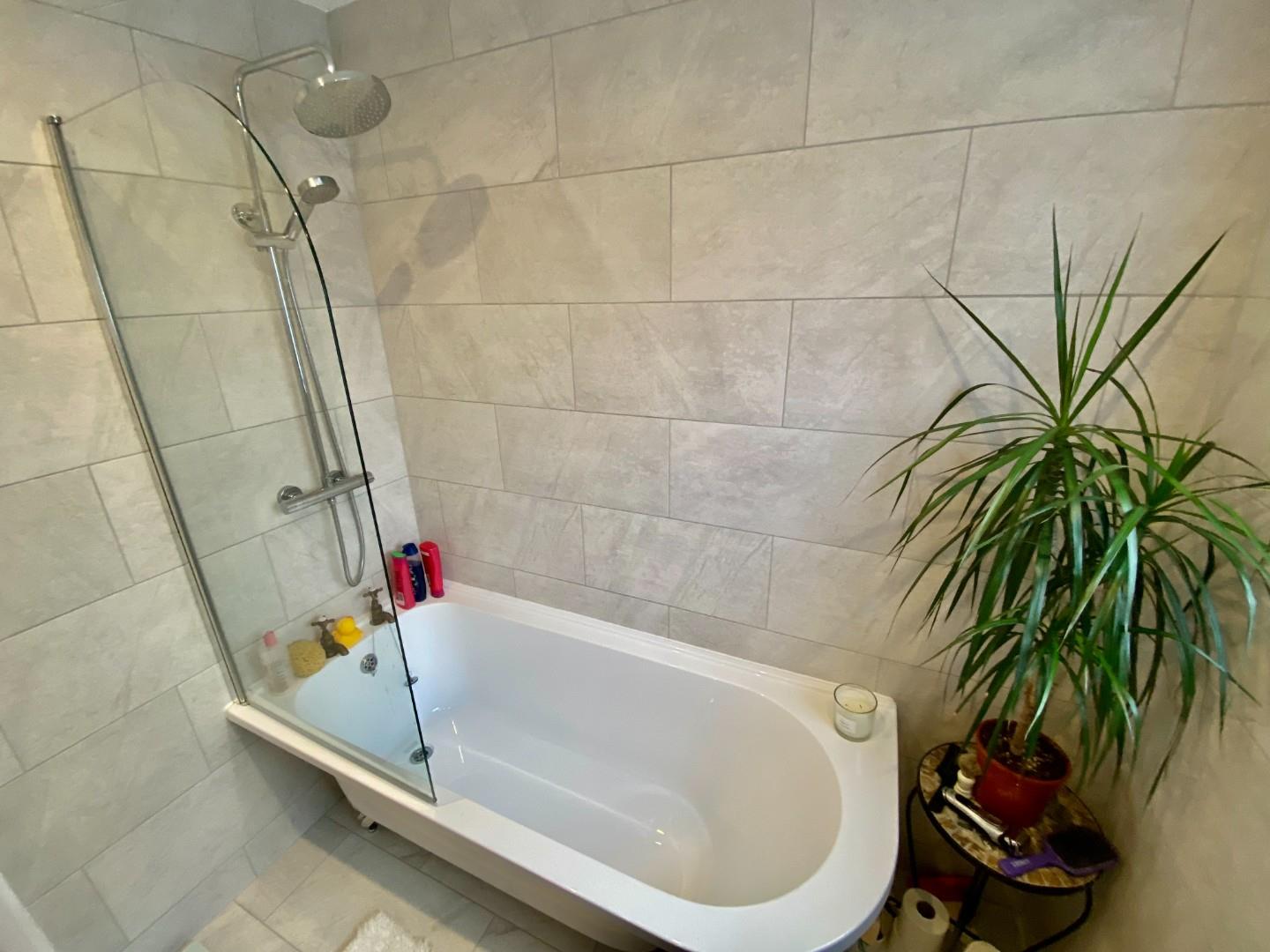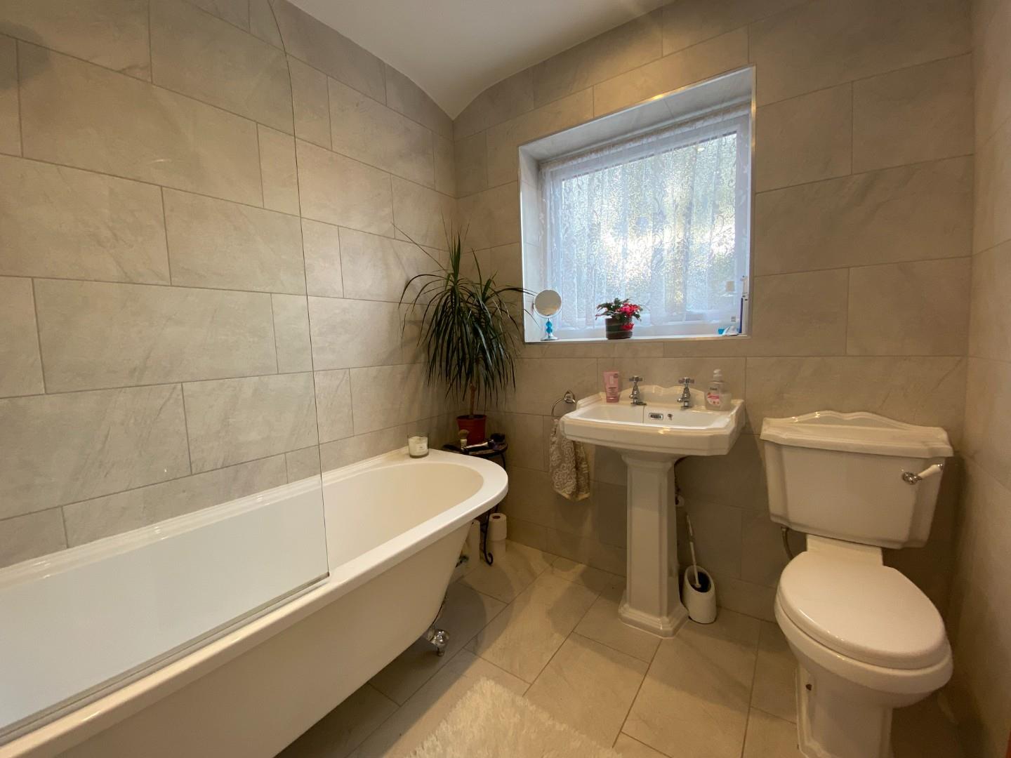 UPVC Double Glazed window to rear aspect. Low level WC. Wash hand basin. Rolled top bath with overhead shower. Tiled Floor and walls