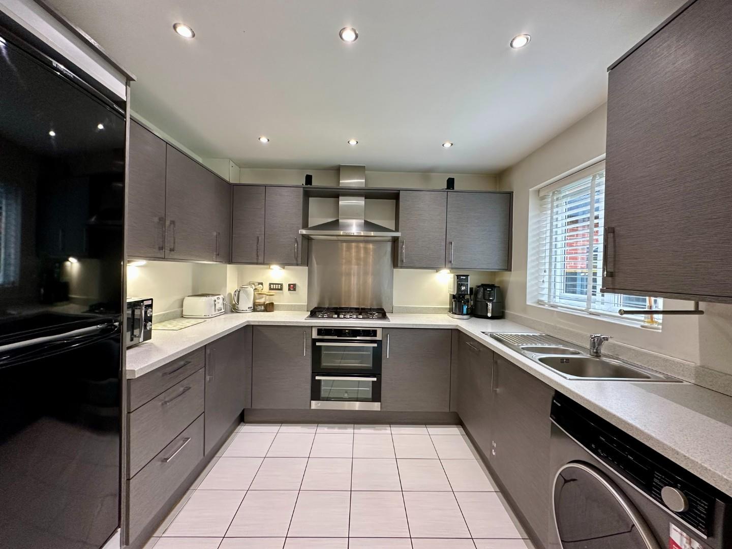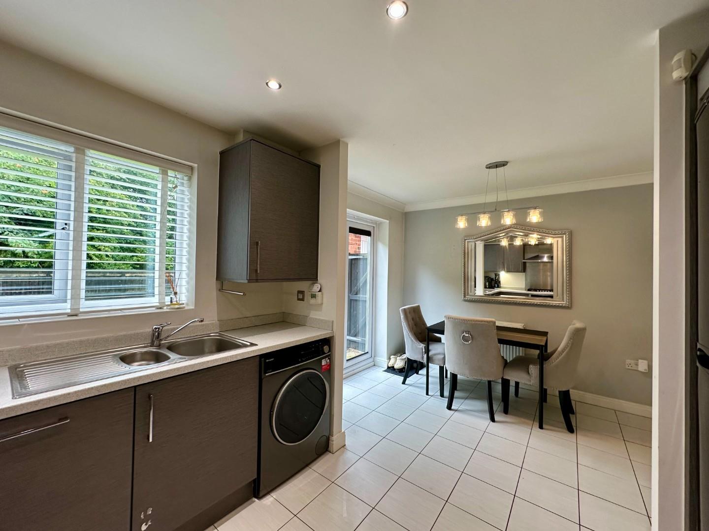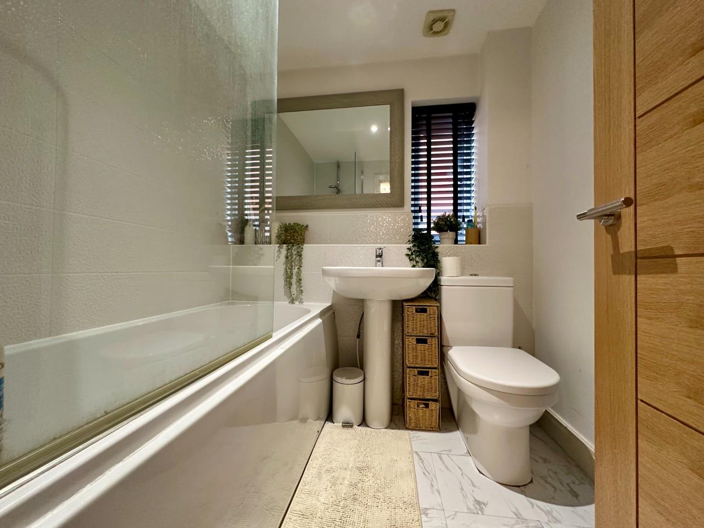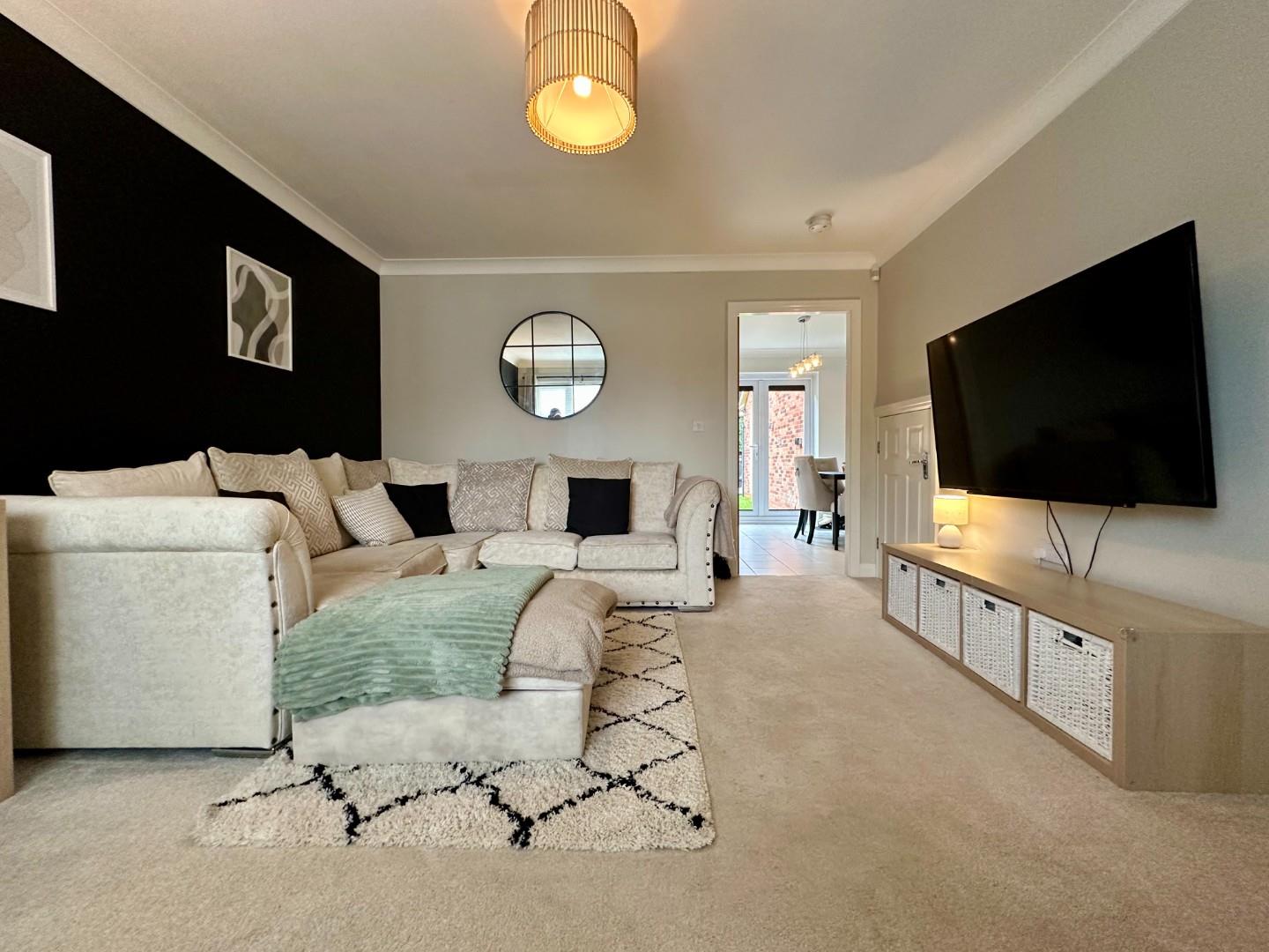 Step into a welcoming entrance hallway with a convenient downstairs W.C., leading to a bright and stylish lounge. At the heart of the home is a spacious kitchen/diner, complete with integrated appliances and French doors that open out onto the delightful garden, perfect for indoor-outdoor living.