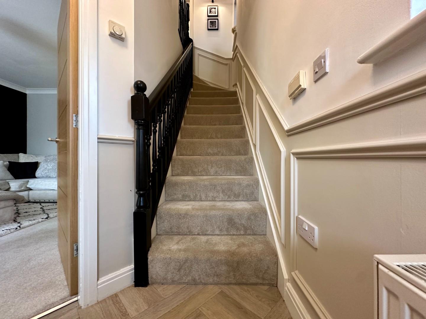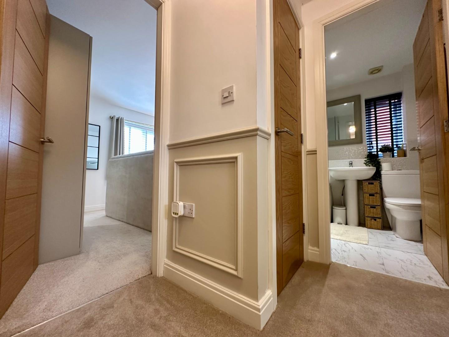 Upstairs, you’ll find three well-proportioned bedrooms. The primary bedroom benefits from its own en-suite shower room, while the remaining bedrooms are served by a sleek, modern family bathroom.