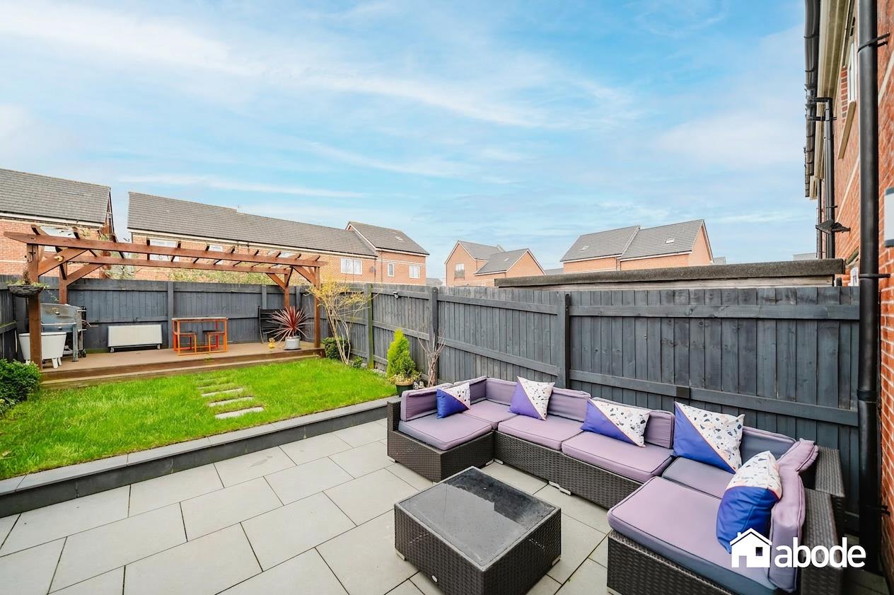 Step outside to discover a beautifully landscaped rear garden, complete with a porcelain tiled patio that is ideal for alfresco dining or simply enjoying the fresh air. This outdoor space is perfect for both relaxation and entertaining, offering a serene retreat from the hustle and bustle of daily life.