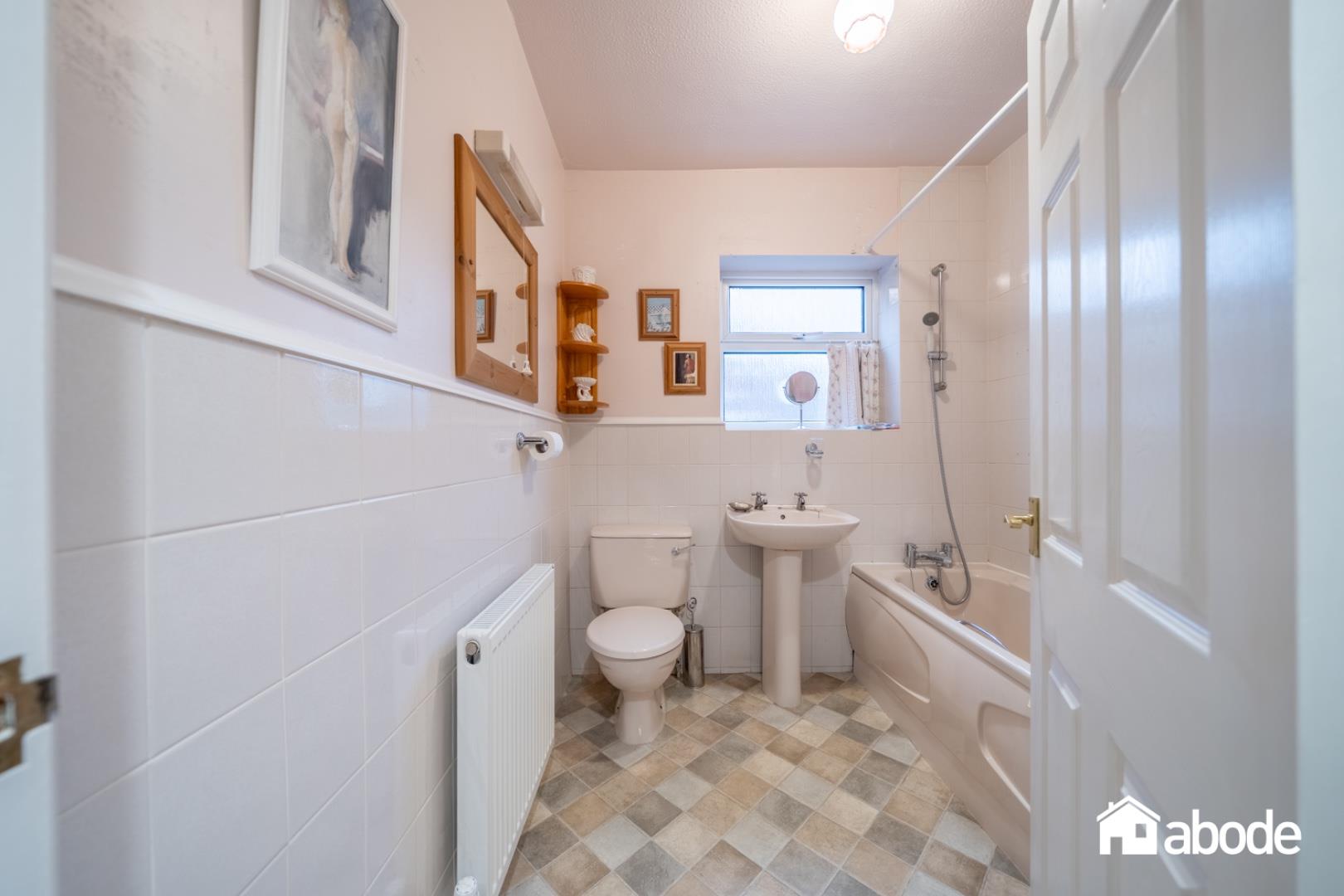 The property itself offers well-balanced and flexible accommodation. A welcoming porch leads into a bright entrance hallway, flowing through to a spacious lounge. There are two well-proportioned ground-floor bedrooms, with one currently utilised as a dining room to suit the current owners’ needs. The bathroom is neatly presented, while the breakfast kitchen provides plenty of space and direct access into a small conservatory overlooking the rear garden.