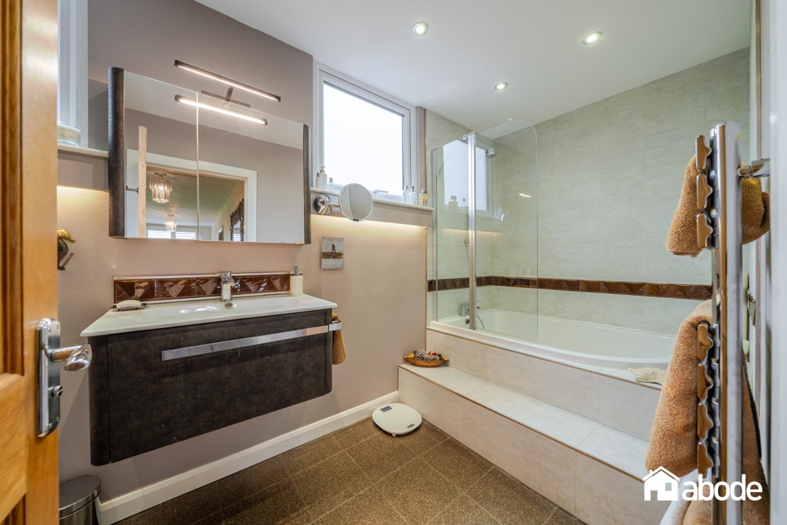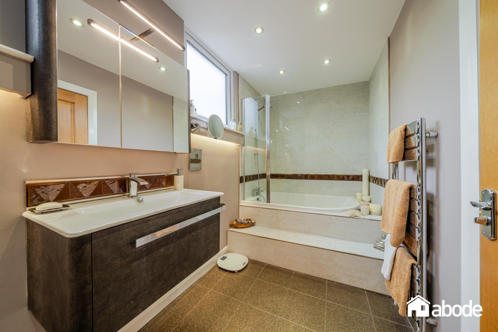To the first floor, there are three well-proportioned bedrooms. The principal bedroom is particularly impressive in size and benefits from a stylish en-suite bathroom featuring a four-piece suite, including a striking freestanding bath. Completing the accommodation is a contemporary family bathroom finished to a high standard.
