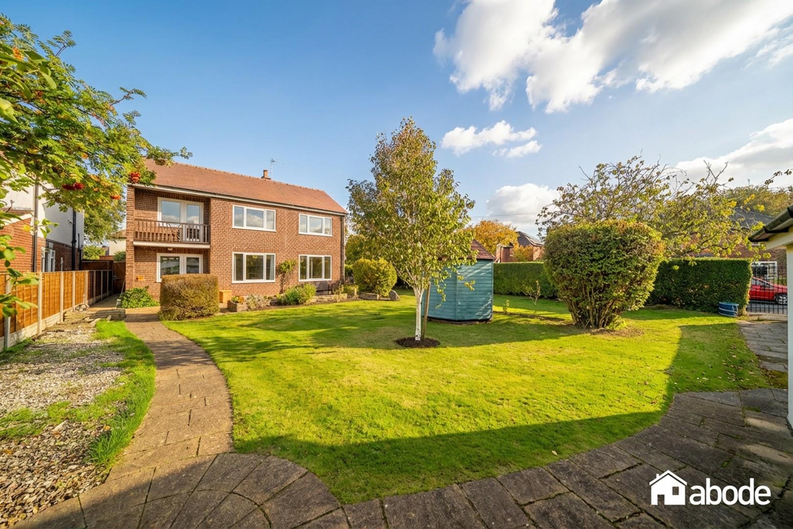 Architecturally designed by Liverpool University in the 1950s, this distinctive home sits proudly on a substantial plot with wraparound gardens, a driveway, and a detached garage.