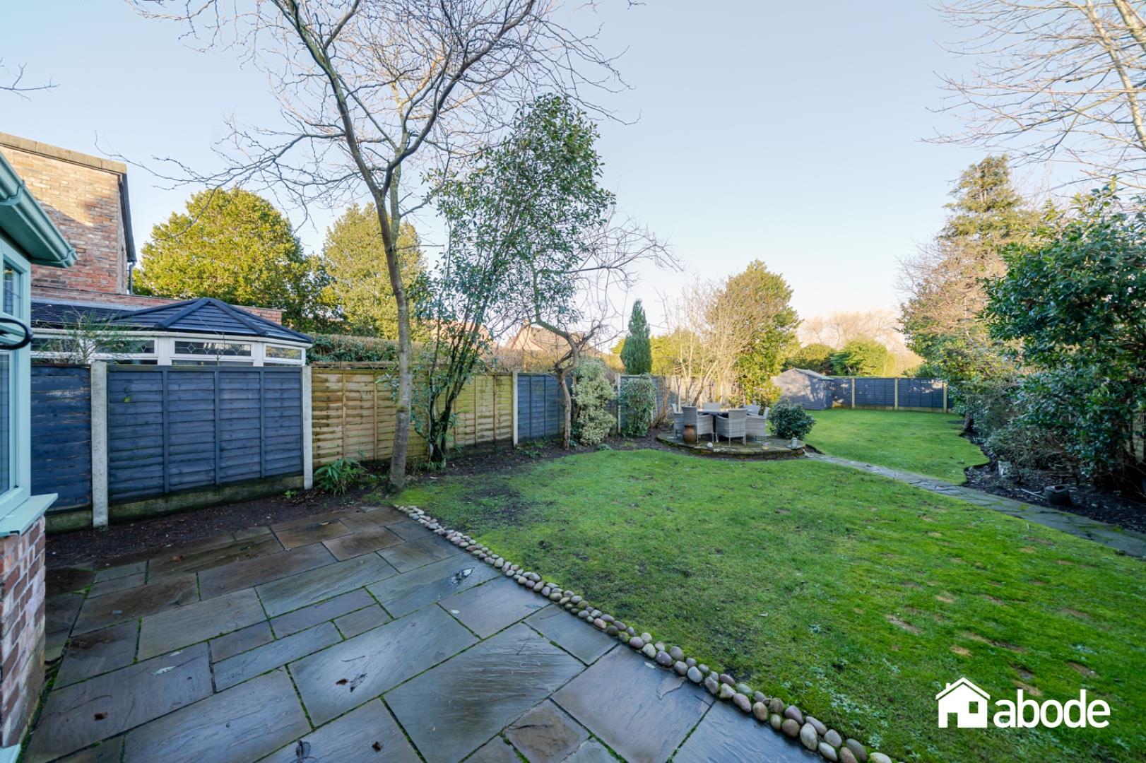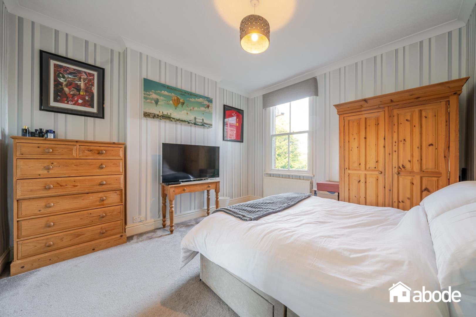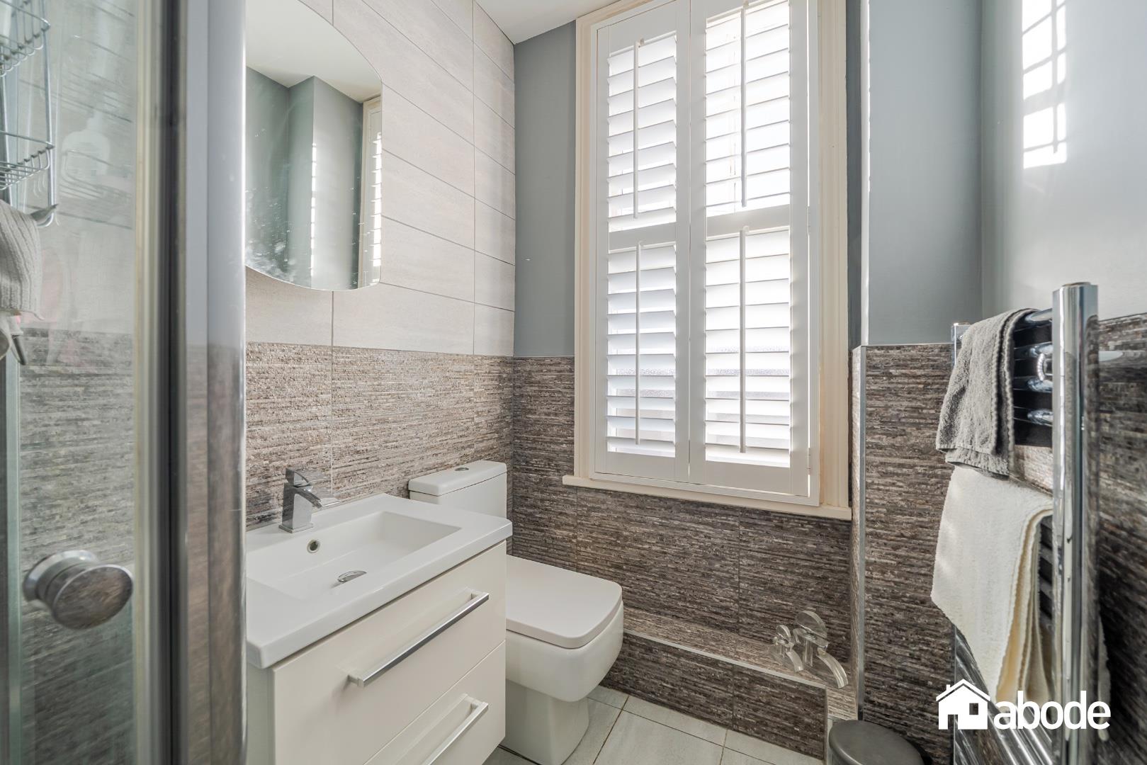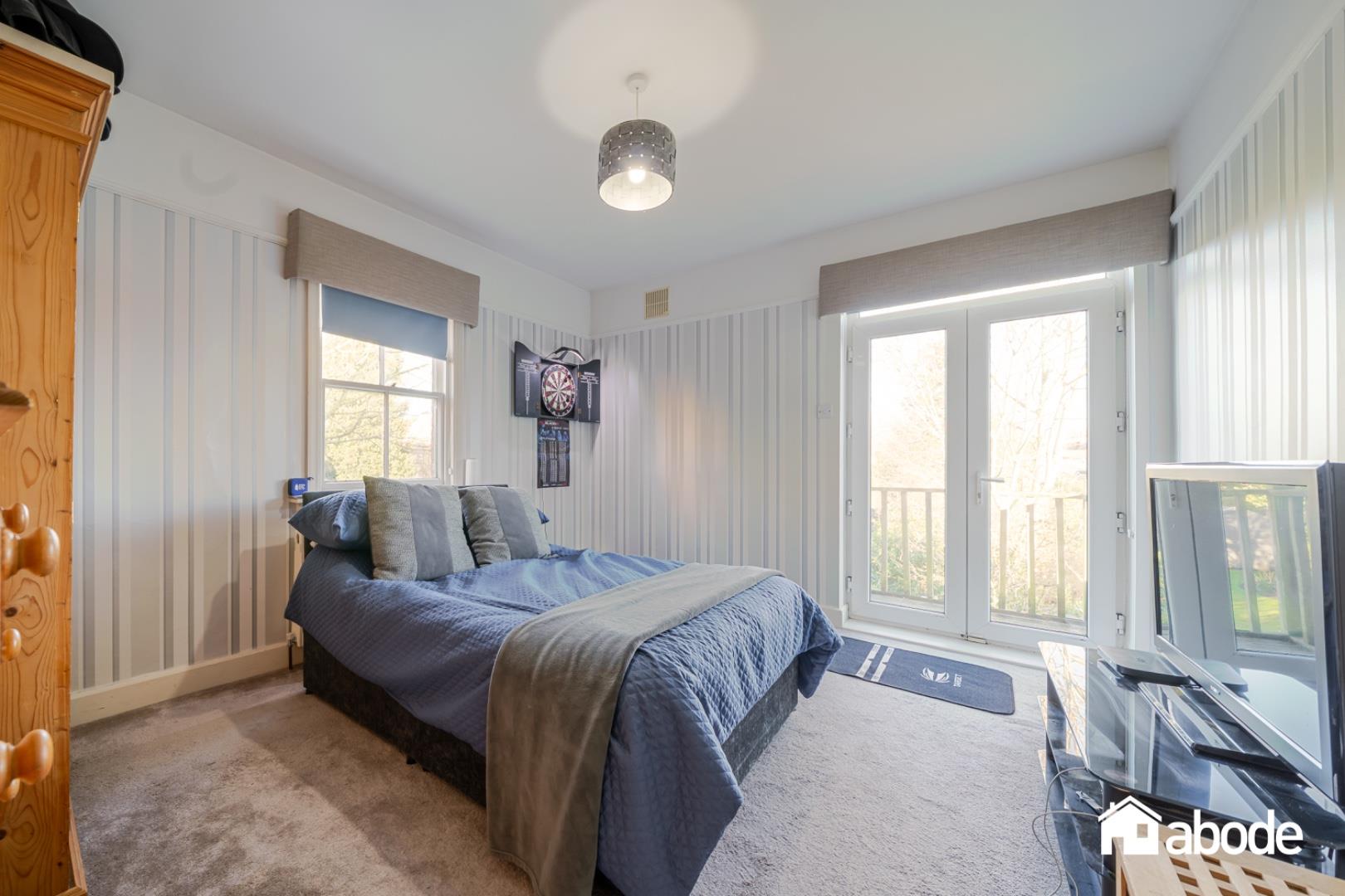 The first-floor landing leads to four well-proportioned bedrooms, all filled with natural light. The rear bedroom benefits from patio doors opening onto a small balcony, providing a delightful outlook over the gardens. The accommodation is completed by a contemporary shower room and a stylish family bathroom featuring a freestanding bath.