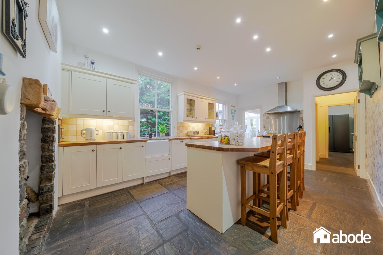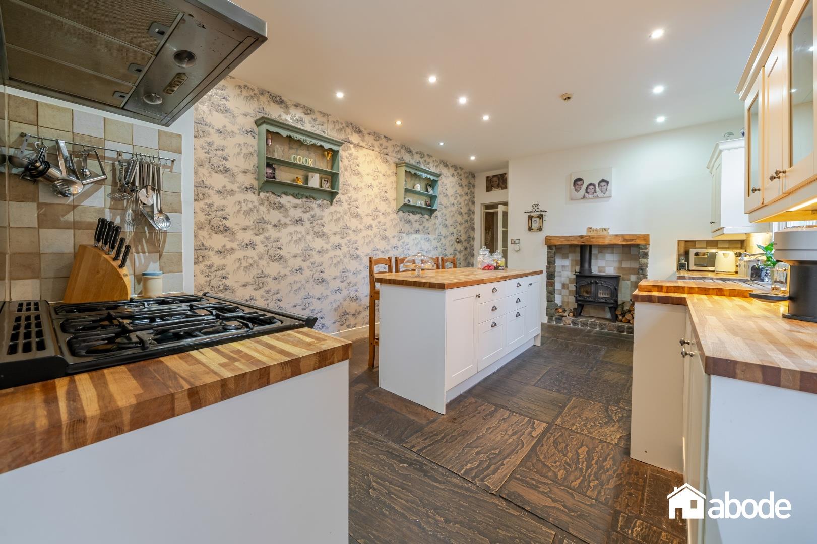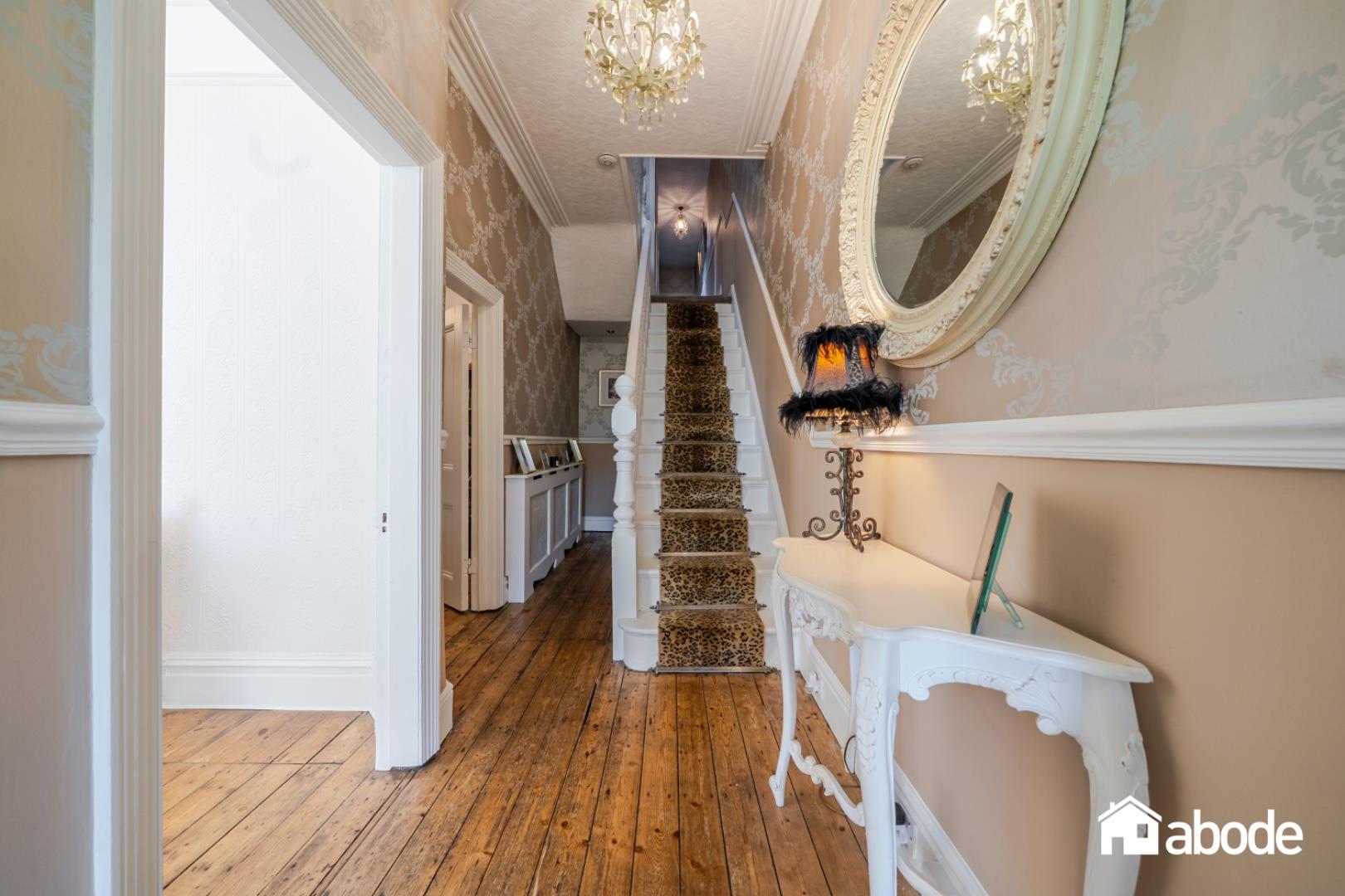 The property is rich in charm and original features, offering generous and versatile accommodation arranged over two floors. A welcoming porch opens into an impressive entrance hallway with useful storage, immediately showcasing the period character that flows throughout the home. To the front, there is a stunning bay-fronted lounge featuring a log burner, creating a warm and inviting space ideal for relaxing evenings. A further sitting room provides additional living accommodation, perfect as a family room or snug.
