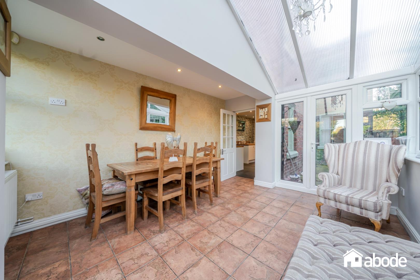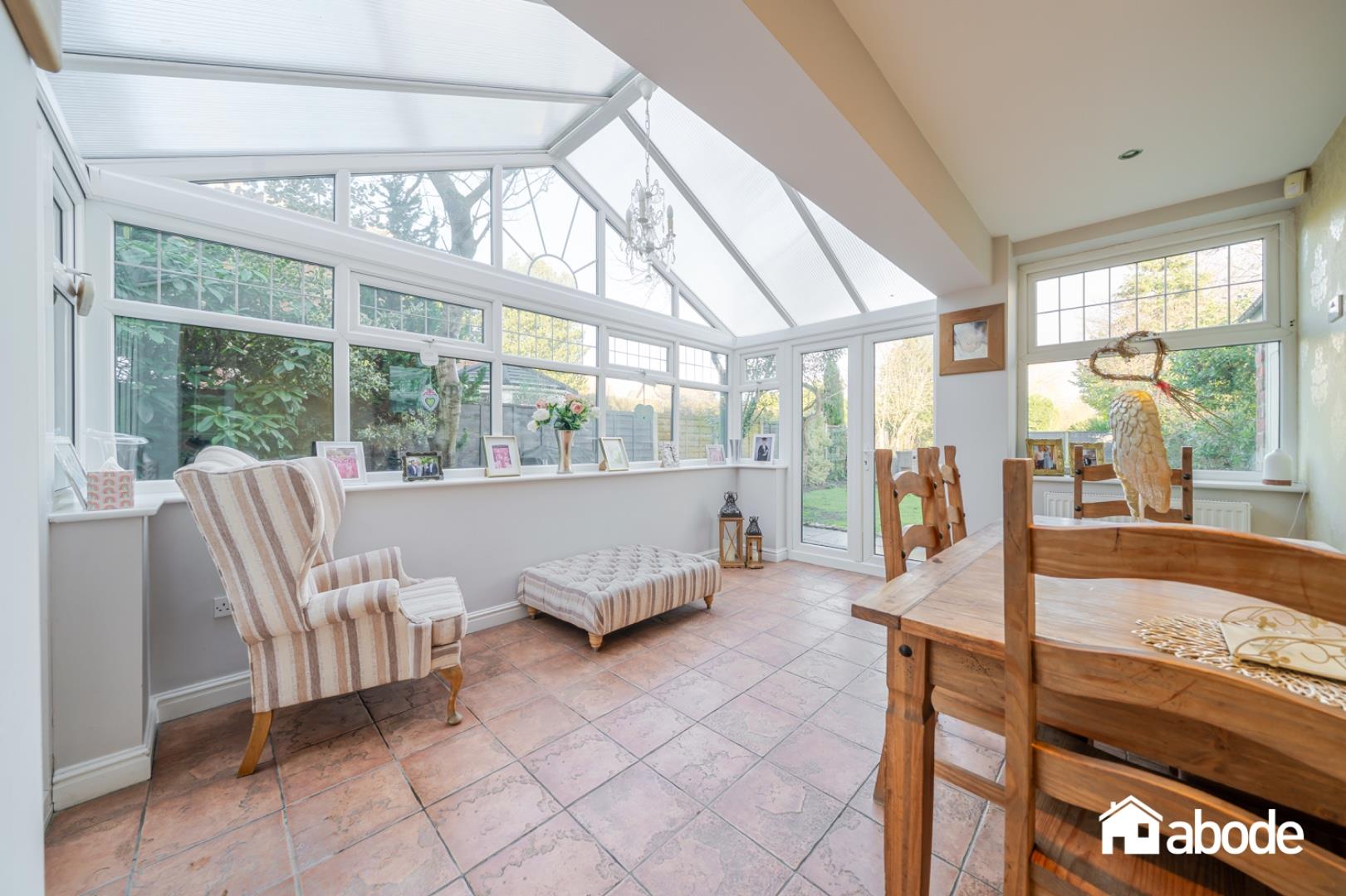 To the rear, the heart of the home is the spacious open-plan, country-style kitchen and dining room, thoughtfully designed for modern family living while retaining a traditional feel. This fantastic space flows seamlessly into a bright conservatory overlooking the garden, ideal for entertaining or enjoying views of the outdoors year-round. Completing the ground floor are a WC and a practical utility room.