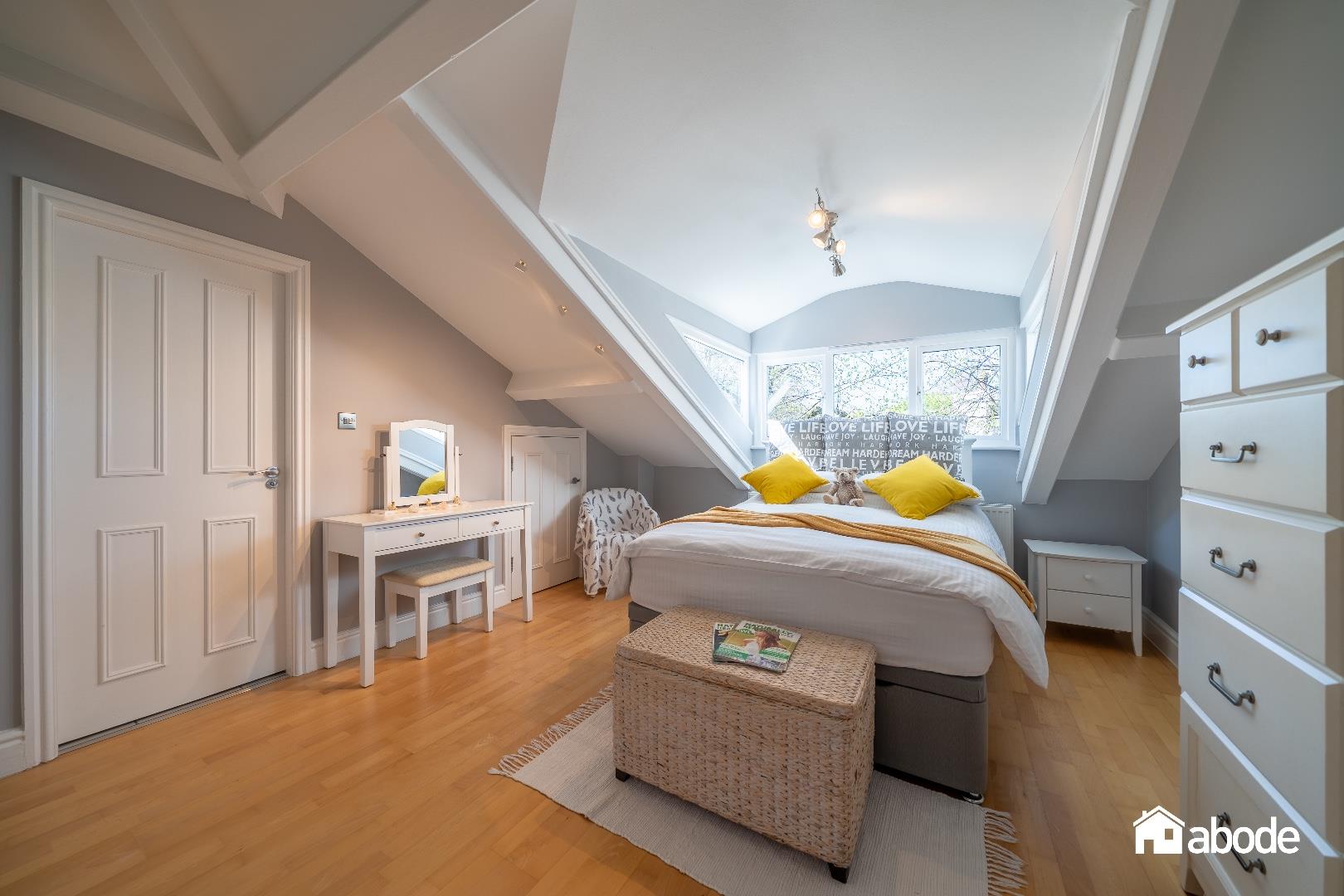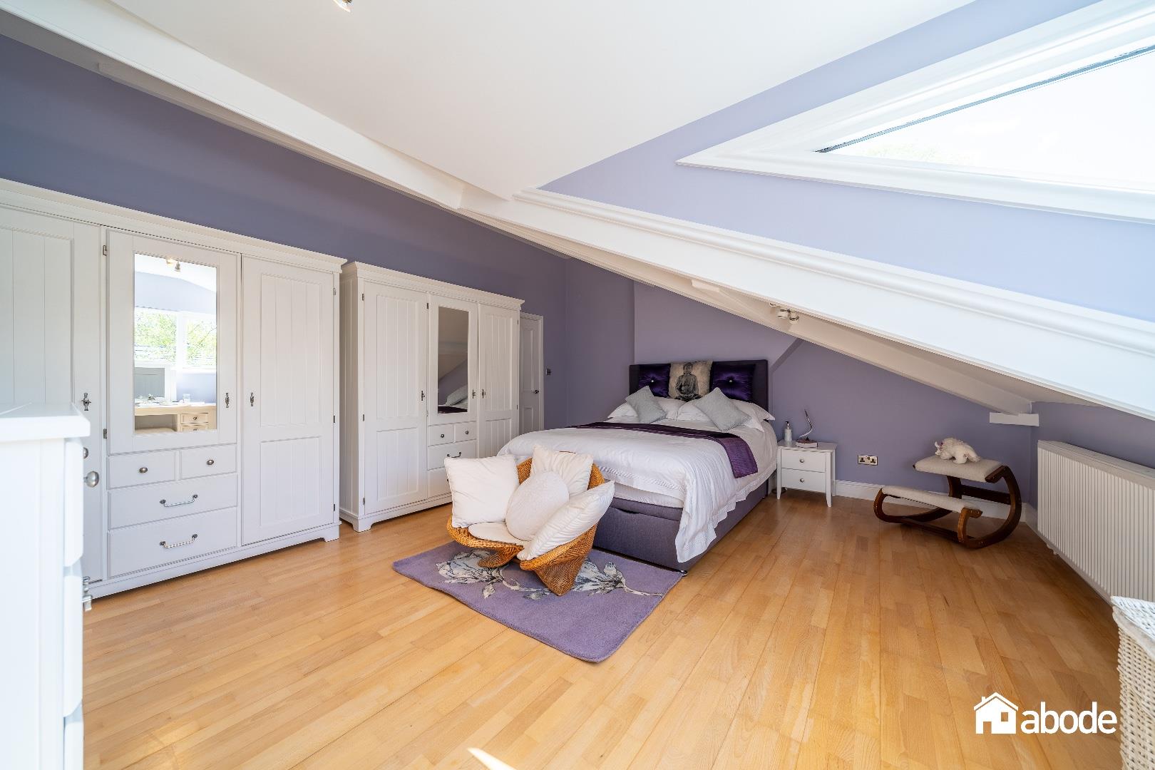 Double glazed walk in dormer window to rear aspect, radiator, electric fire with feature surround, Bamboo flooring, double glazed Velux window to rear aspect, sloped ceiling, storage and cloakroom.