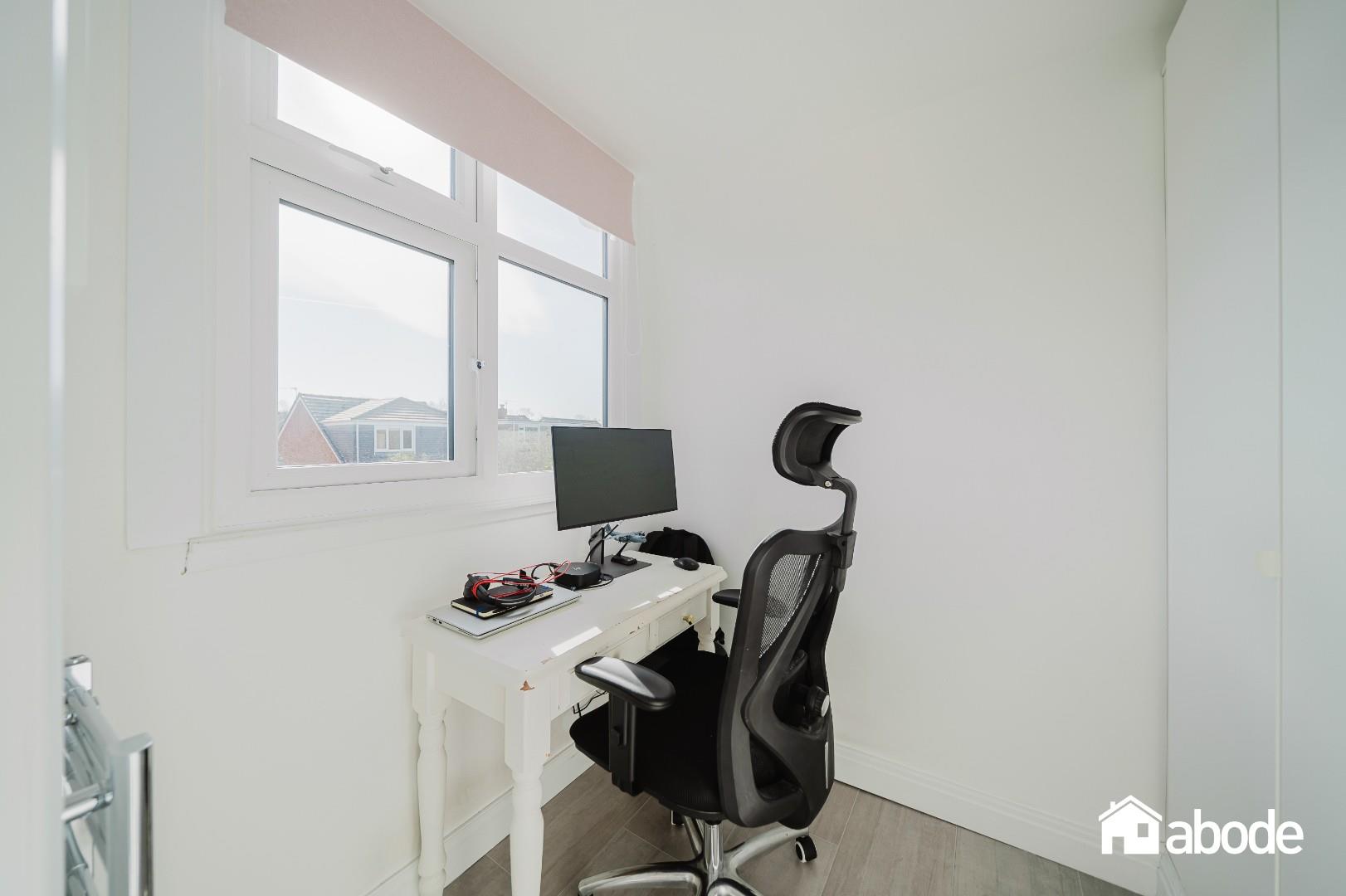 To the first floor, there are three well-proportioned bedrooms. The principal bedroom benefits from an adjoining study/dressing area, offering flexibility for home working or additional storage.