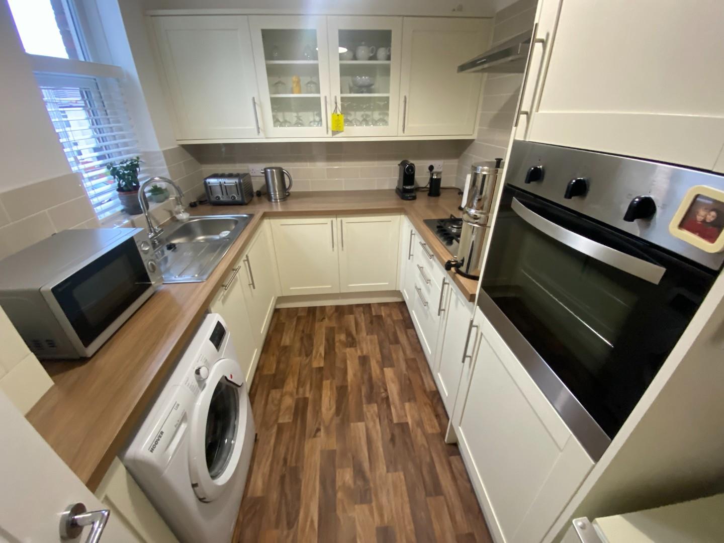 UPVC Double Glazed window to side aspect. A range of wall and base units. Sink and drainer unit. Plumbing for washing machine. Integrated electric oven and hob. Extractor fan. Part tiled walls. Fridge/freezer.