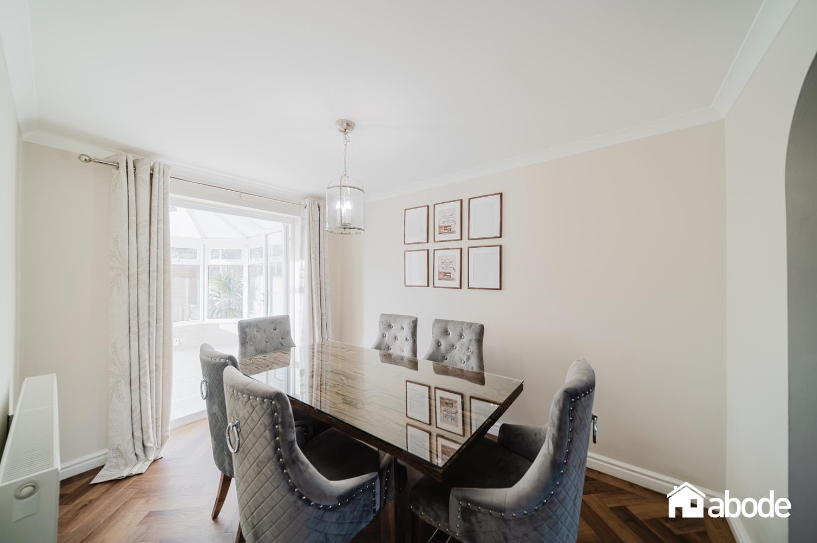 The property features a well-appointed dining area and a delightful conservatory, which bathes the space in natural light and offers a serene spot to enjoy the views of the garden. The master bedroom benefits from an ensuite bathroom, ensuring privacy and convenience, while the additional two bedrooms are generously sized, ideal for family or guests.