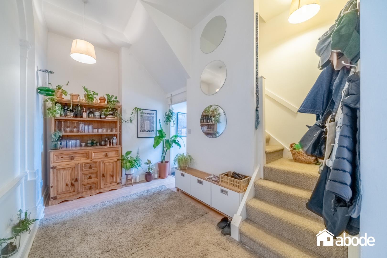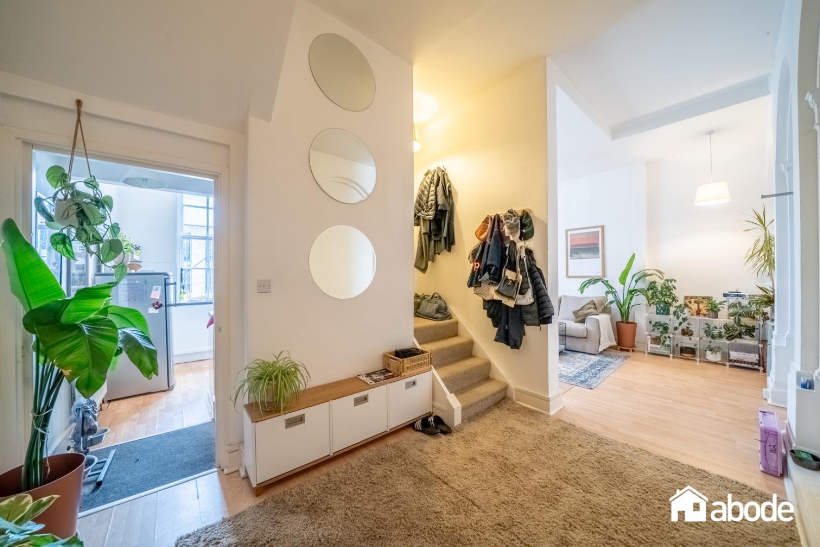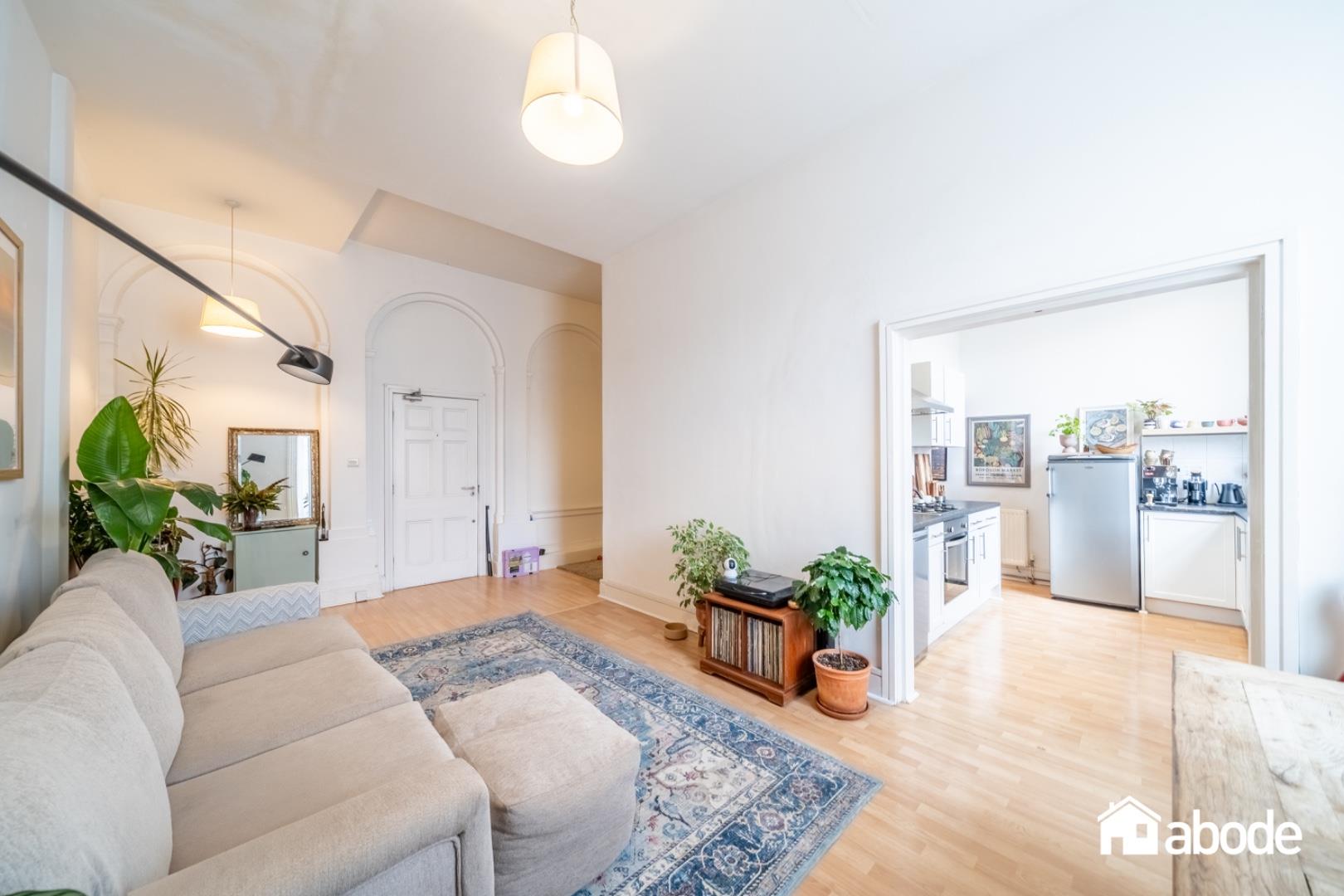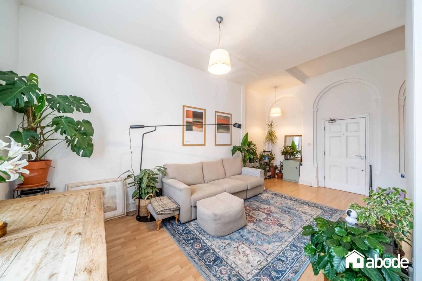 The apartment itself has two double bedrooms and a fully tiled family bathroom on the upper floor. The lower floor is all open plan, spacious, bright, and airy, with its original sash windows and decorative arches in the hall area.