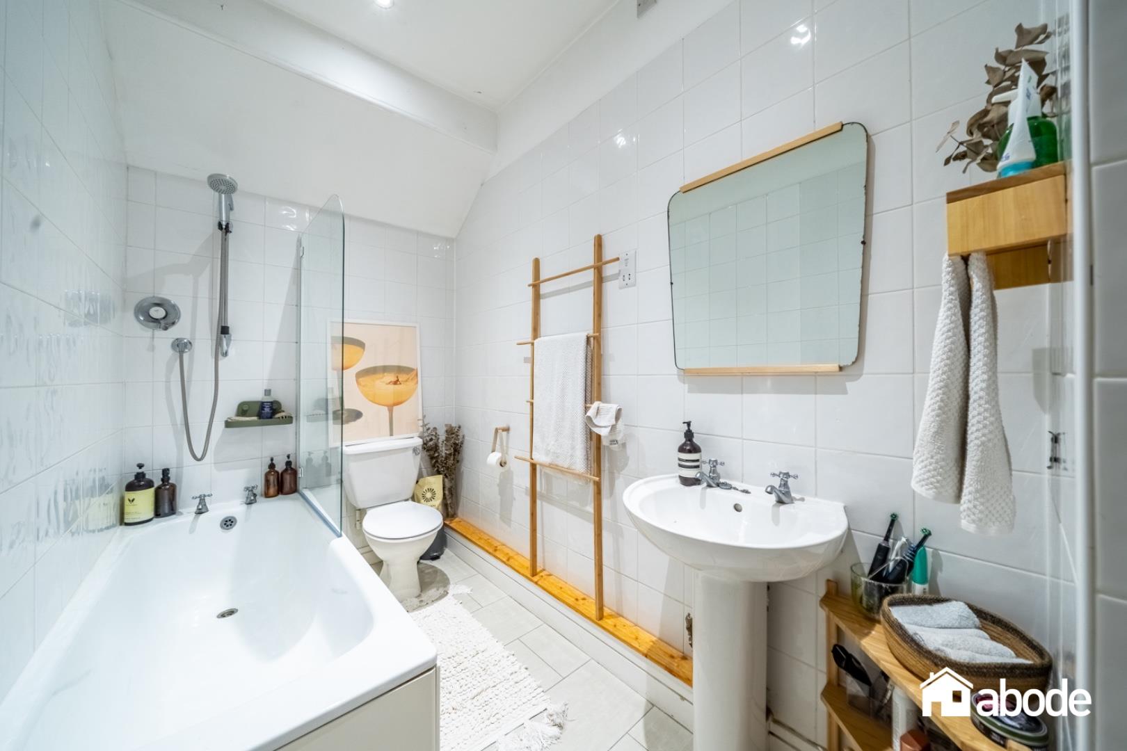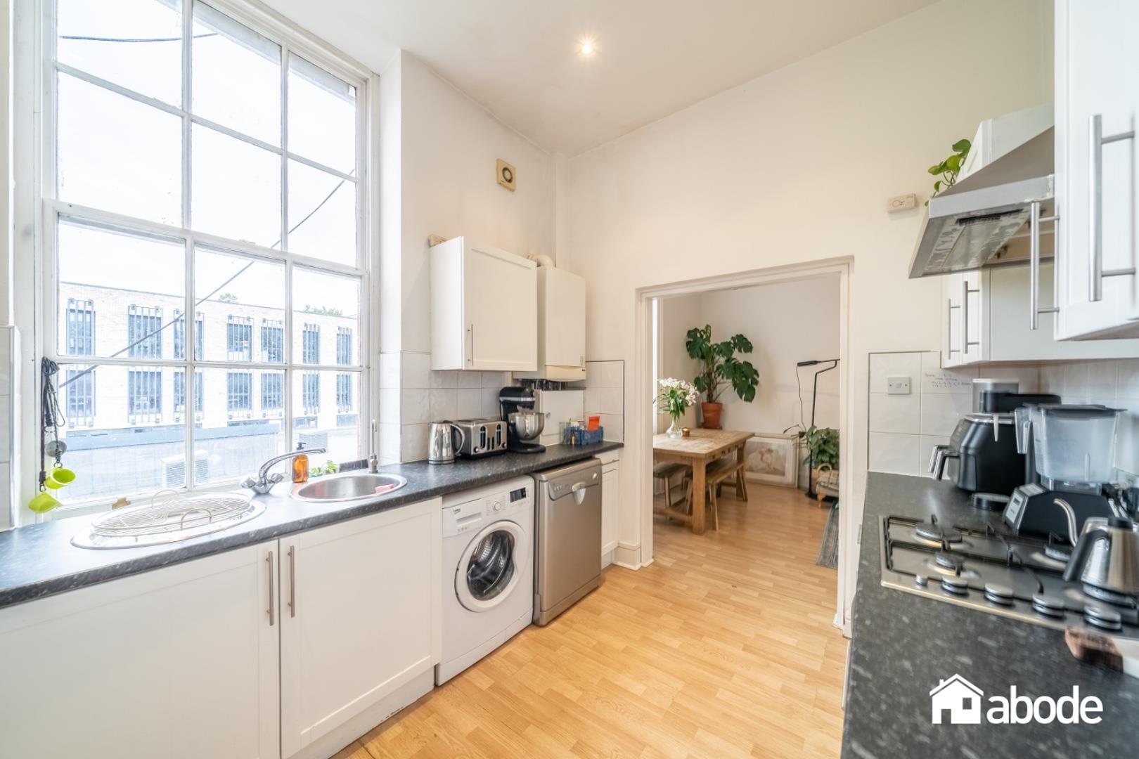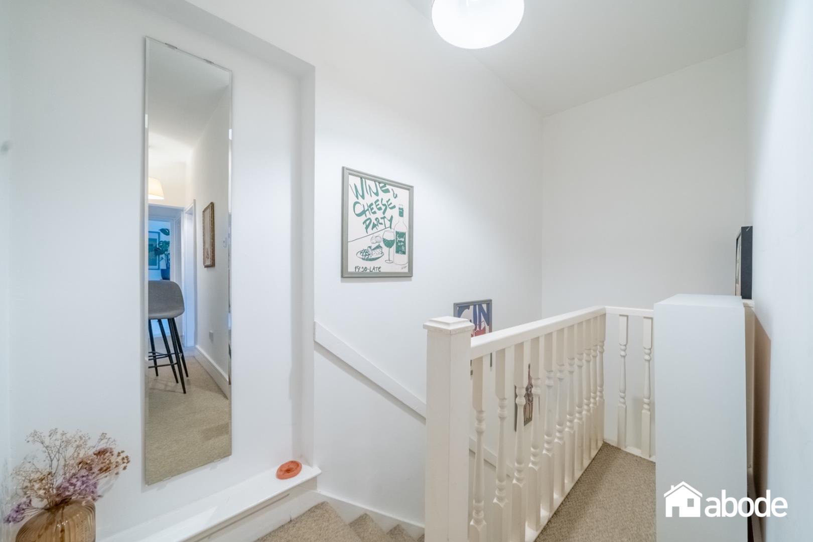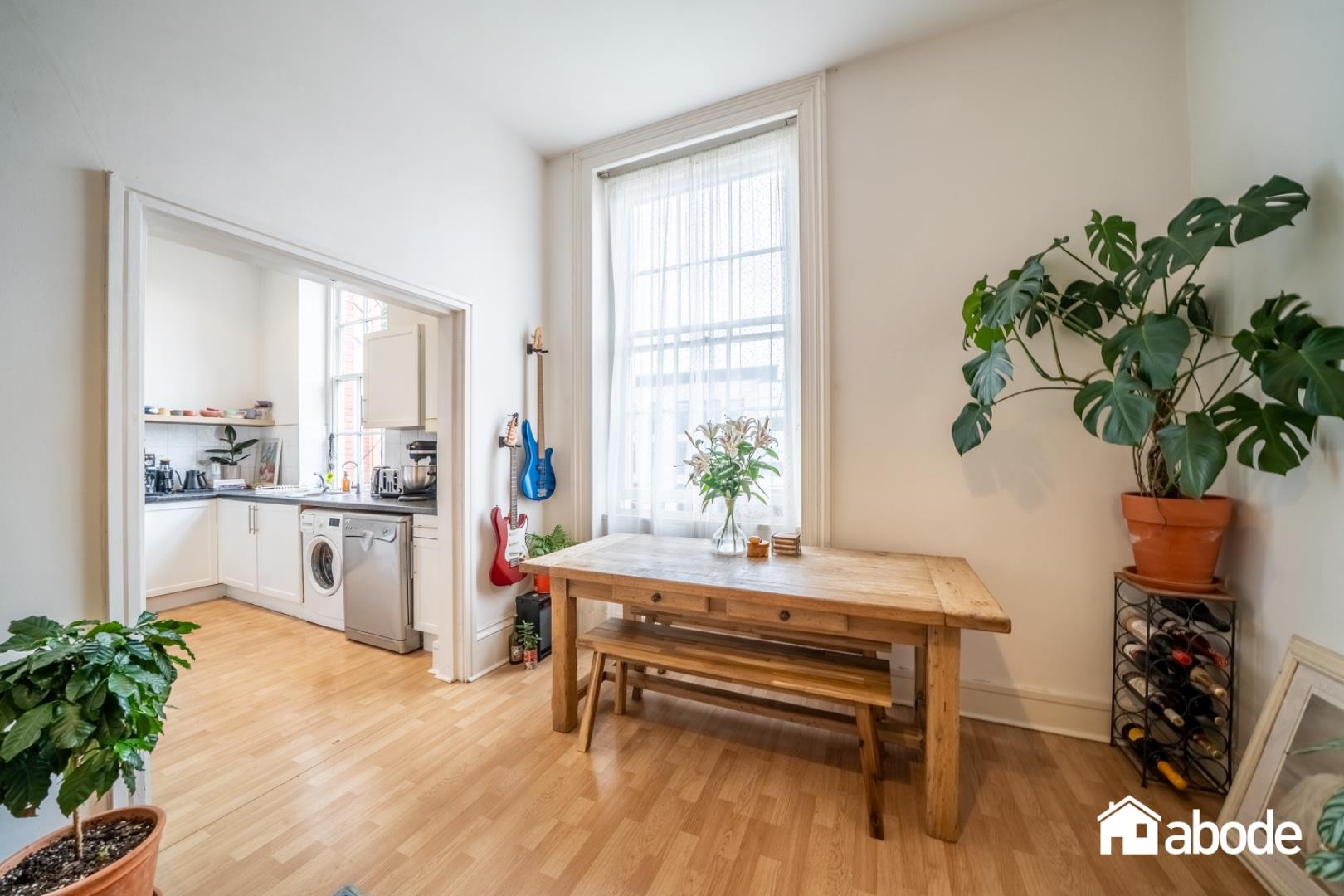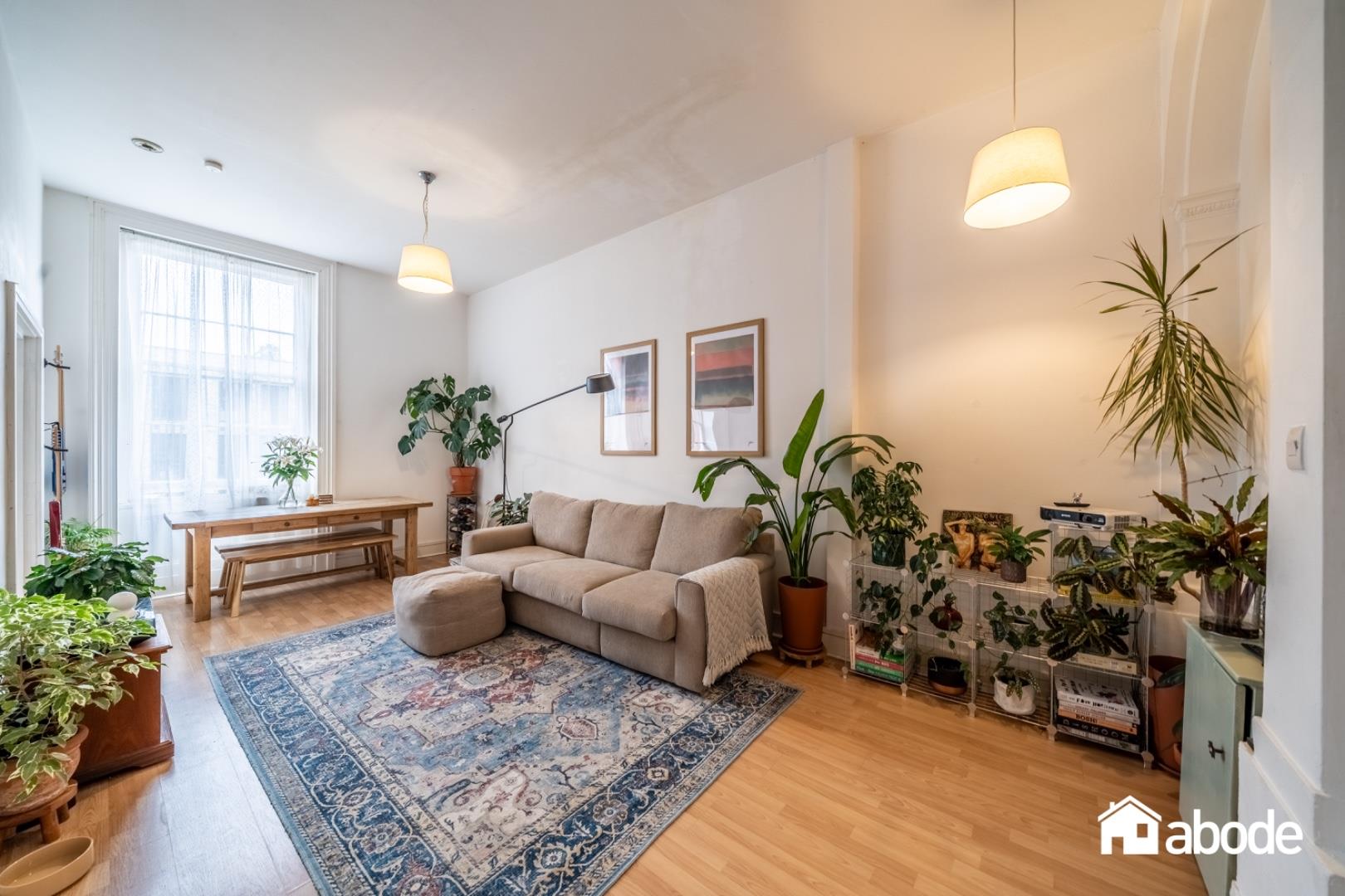 The apartment itself has two double bedrooms and a fully tiled family bathroom on the upper floor. The lower floor is all open plan, spacious, bright, and airy, with its original sash windows and decorative arches in the hall area.