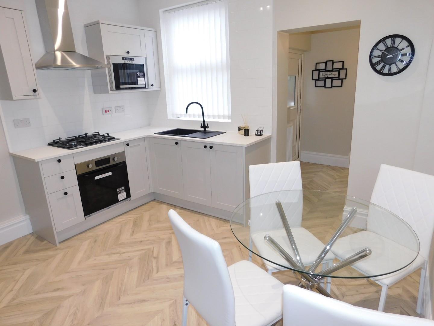 Abode are pleased to present this beautifully presented, two bed mid terrace. To the ground floor there is an entrance vestibule, lounge with sofa, newly fitted modern kitchen diner with oven and hob (no other white goods provided) and table and chairs, utility area with plumbing for a washing machine and brand-new stylish bathroom with shower over bath. Upstairs are two double bedrooms; a bed can be provided if needed. Externally there is a yard to the rear and parking is on street – permit required from the council.