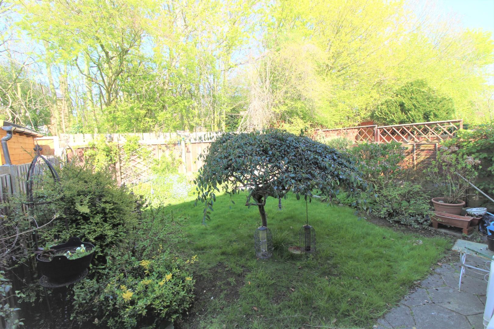 Lawned garden with patio area to rear.