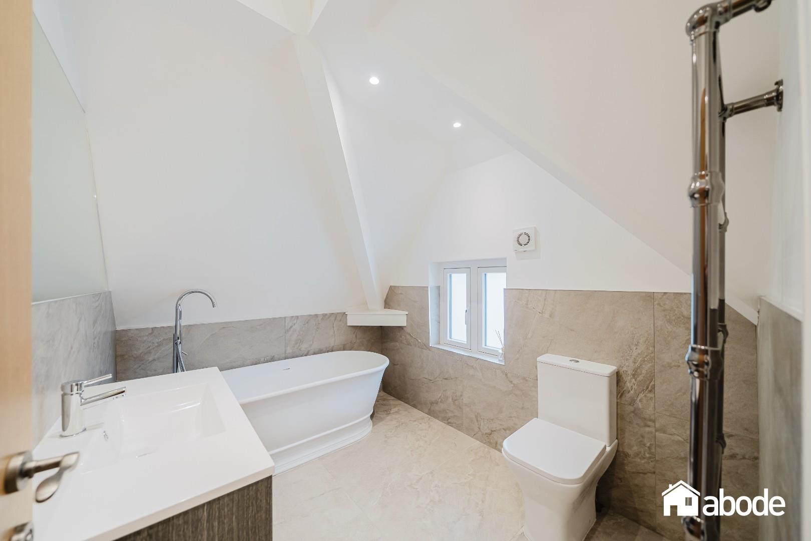 To the first floor, there are two well-proportioned bedrooms, alongside a beautifully finished family bathroom with a freestanding bath, plus the added benefit of a stylish en-suite shower room.