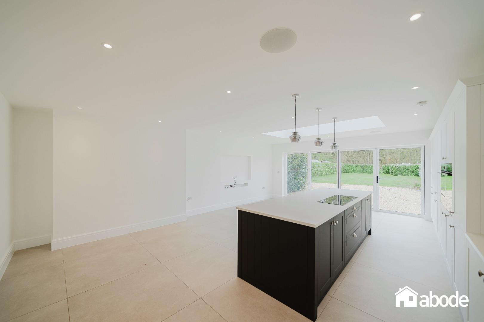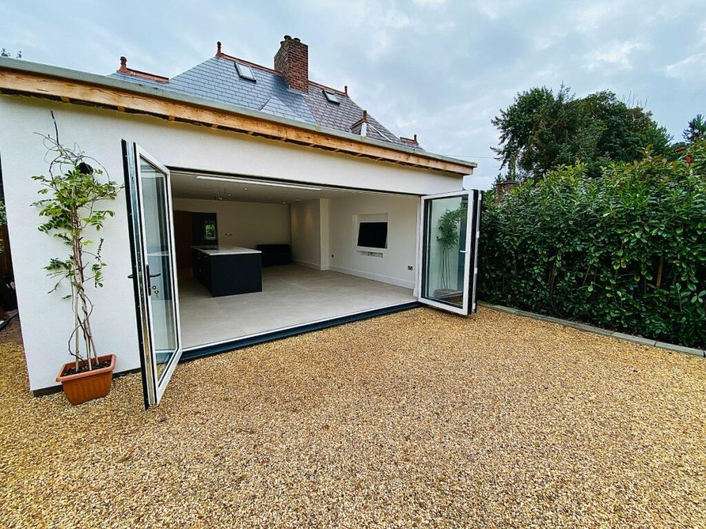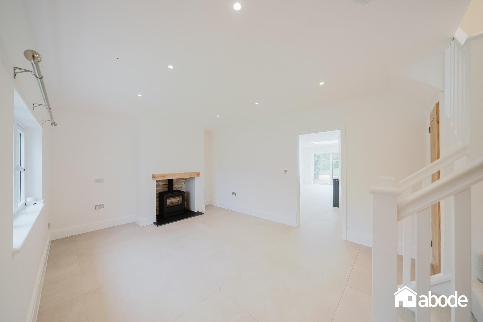 The accommodation begins with off-road parking and a welcoming entrance hallway, leading through to a cosy lounge featuring a newly installed gas stove burner. To the rear, the property has been thoughtfully extended to create a stunning open-plan kitchen and dining space, complete with a central island and a range of high-specification appliances. Bifold doors open seamlessly onto a generous, west-facing rear garden, ideal for entertaining or simply enjoying the afternoon and evening sun.