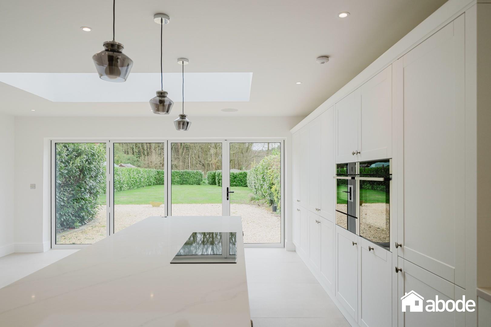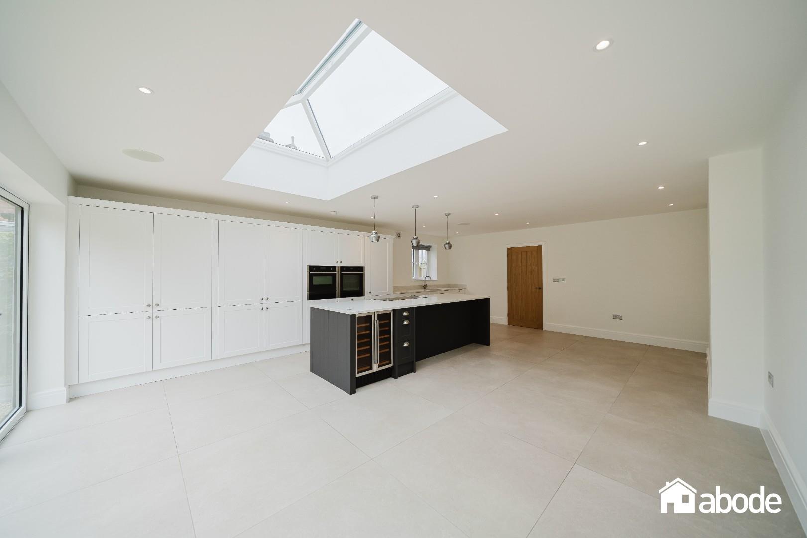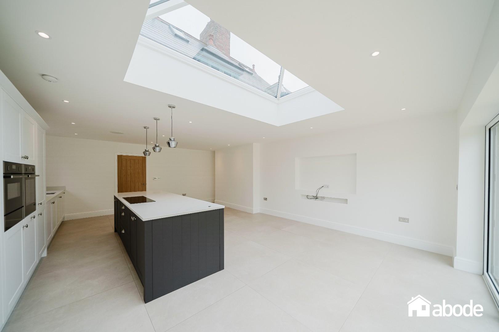 The accommodation begins with off-road parking and a welcoming entrance hallway, leading through to a cosy lounge featuring a newly installed gas stove burner. To the rear, the property has been thoughtfully extended to create a stunning open-plan kitchen and dining space, complete with a central island and a range of high-specification appliances. Bifold doors open seamlessly onto a generous, west-facing rear garden, ideal for entertaining or simply enjoying the afternoon and evening sun.