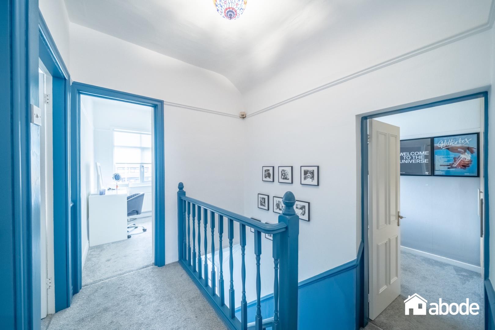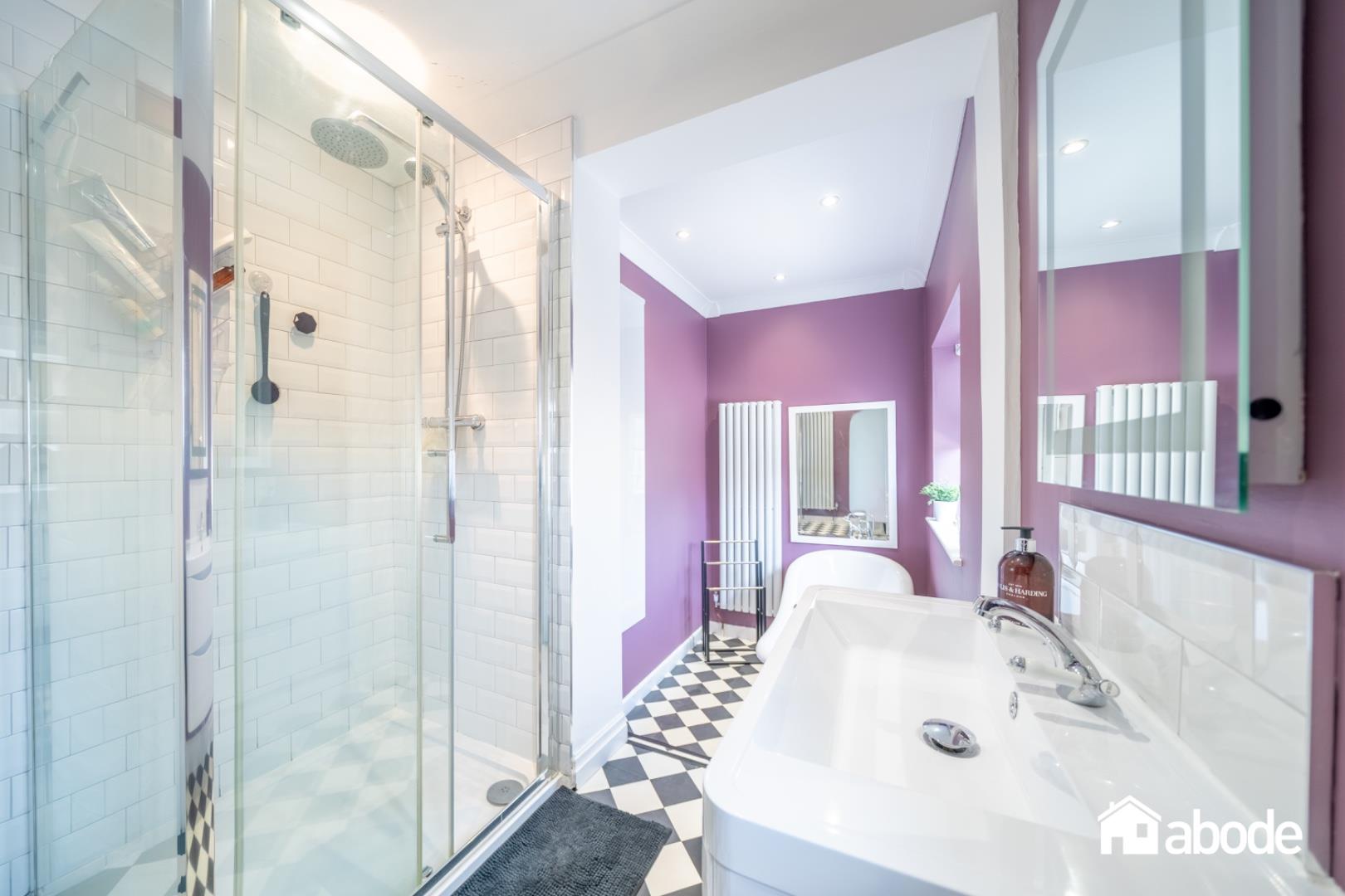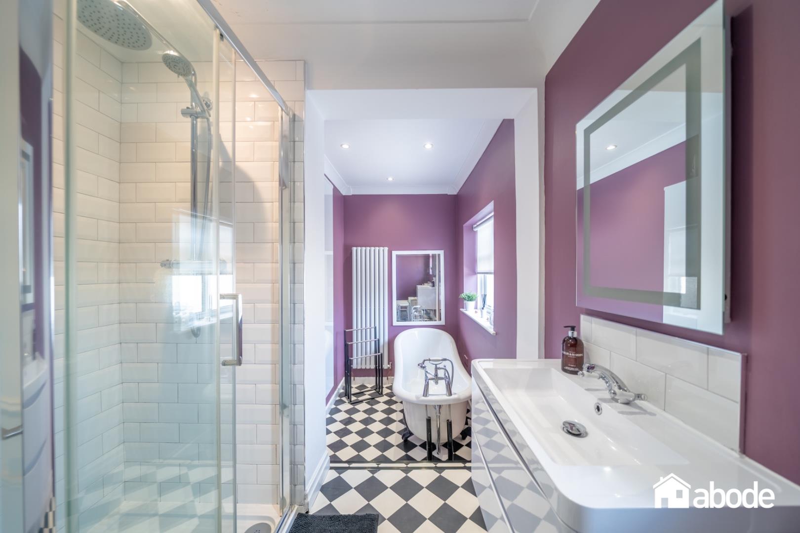 Upstairs are four generous bedrooms, all with fitted wardrobes, and a super-stylish four-piece family bathroom featuring a walk-in shower and freestanding roll-top bath.