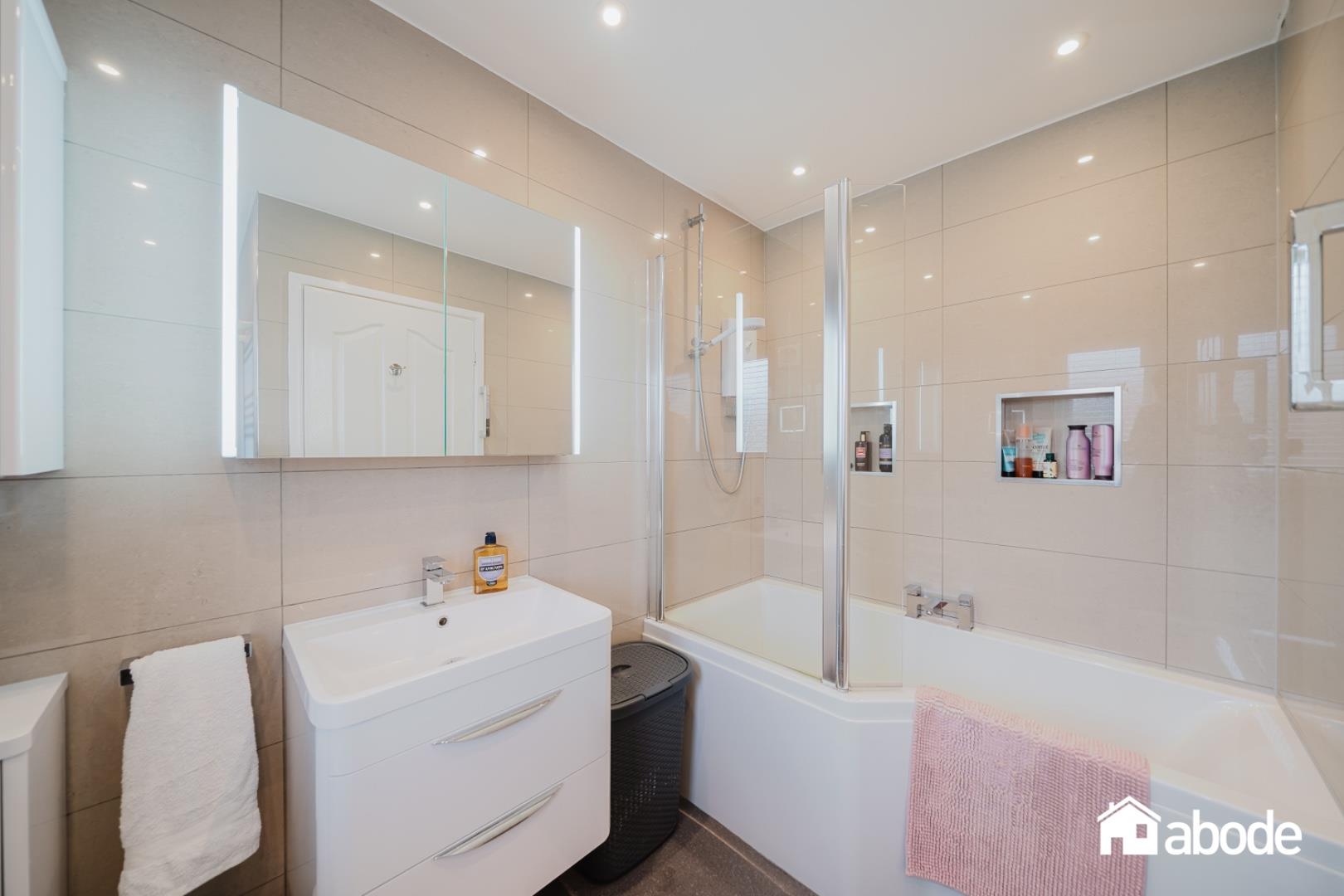 The modern kitchen is a standout feature, equipped with contemporary fittings that make cooking a pleasure. The bathroom has also been tastefully updated, ensuring a fresh and stylish environment.
