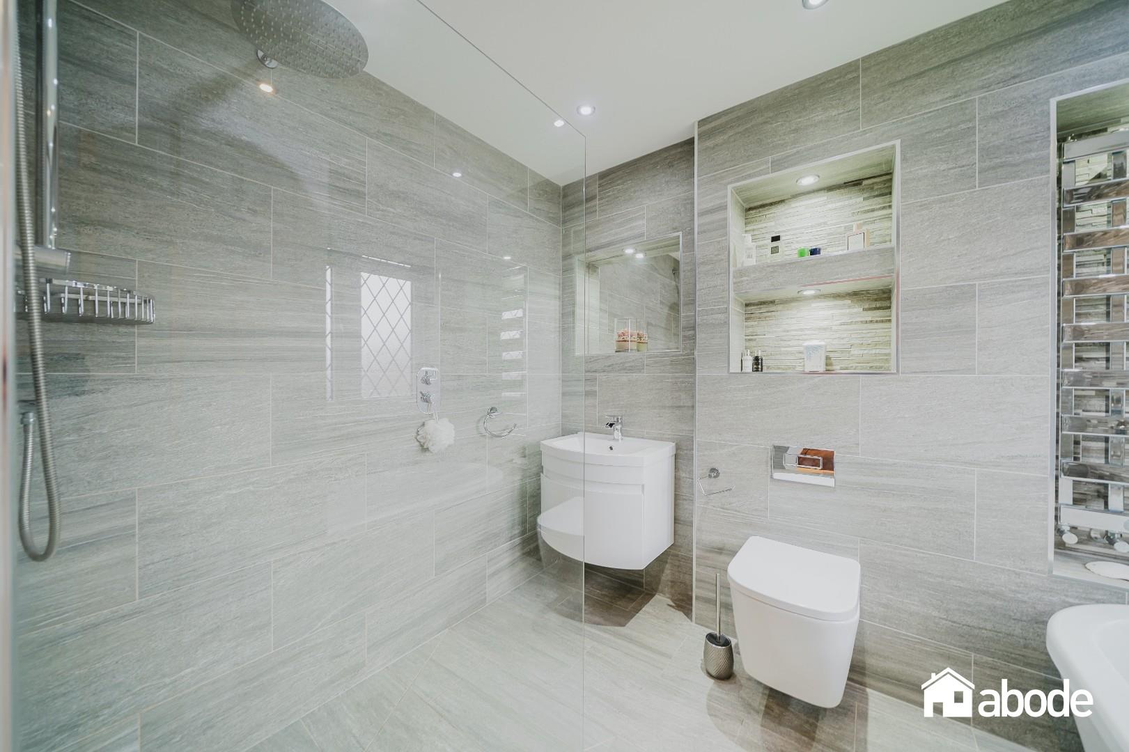 To the first floor, there are three well proportioned bedrooms. Bedroom three was originally configured as two separate rooms and could easily be reinstated, offering flexibility for those requiring an additional bedroom or home office. Bedroom two enjoys a stylish en-suite shower room, while the impressive primary suite features a luxurious en-suite bathroom complete with freestanding bath, four piece suite and walk in wardrobe. A contemporary family bathroom completes this level.