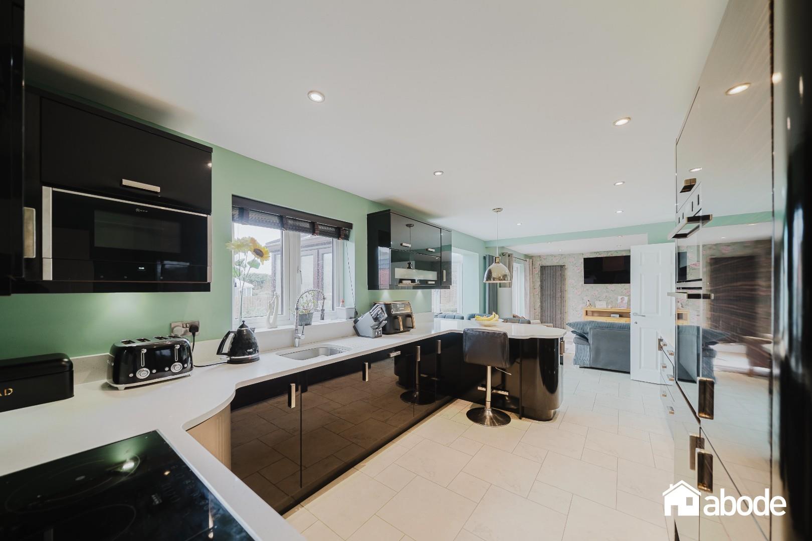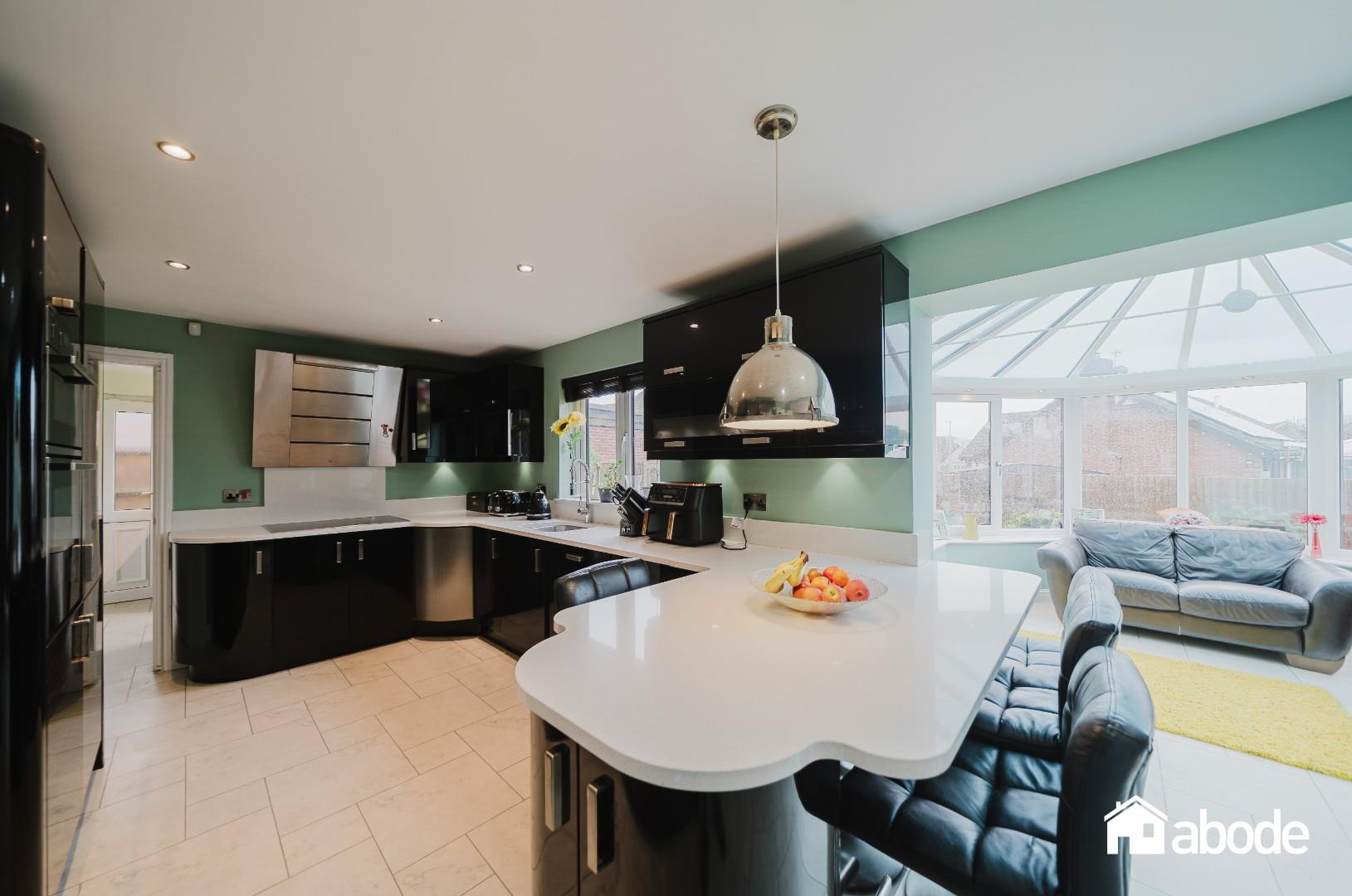 Upon entering, you are welcomed by a spacious entrance hallway with convenient ground floor W.C. The principal lounge is bright and well proportioned, complemented by a separate formal dining room. To the rear, the heart of the home is the stunning open plan kitchen and sitting area, seamlessly flowing into the conservatory and creating an ideal space for modern family living and entertaining. The kitchen is fitted with integrated appliances and further benefits from a separate utility room with access to the integral garage.