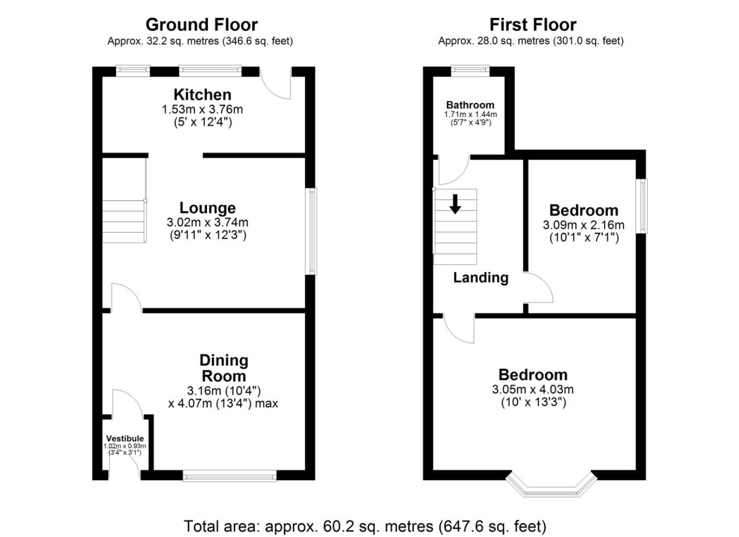 The property itself briefly comprises an entrance door opening to front dining room, rear lounge and fitted kitchen all to the ground floor. To the first floor there are two double bedrooms and bathroom.