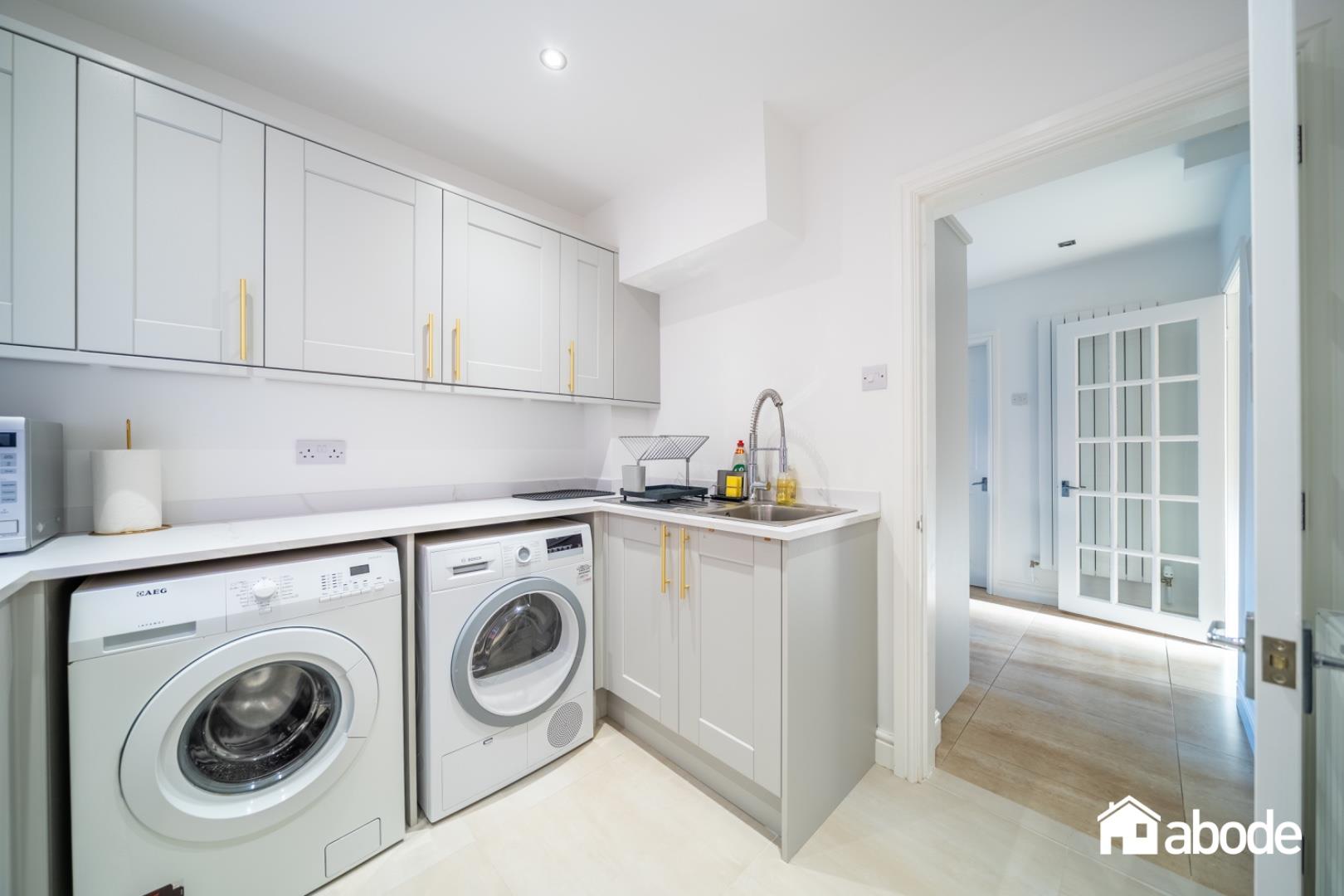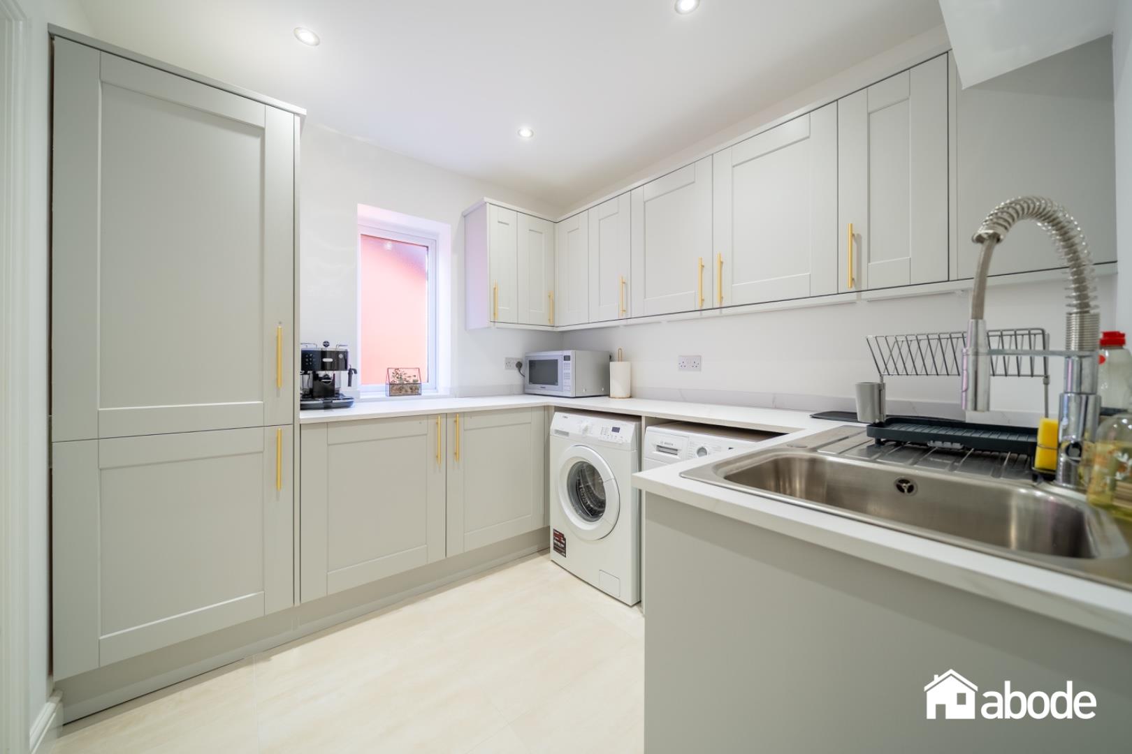 The modern kitchen, complete with a utility room, is designed for both functionality and style, catering to the needs of any culinary enthusiast. Each of the three bathrooms is tastefully finished, ensuring convenience and privacy for all residents.