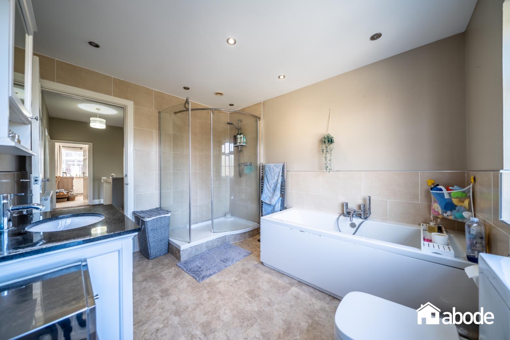 Upstairs, there are four well-proportioned bedrooms, including a spacious primary suite with en-suite shower room, while the remaining bedrooms share a beautifully finished four-piece family bathroom with quality fittings and a fresh, modern feel.