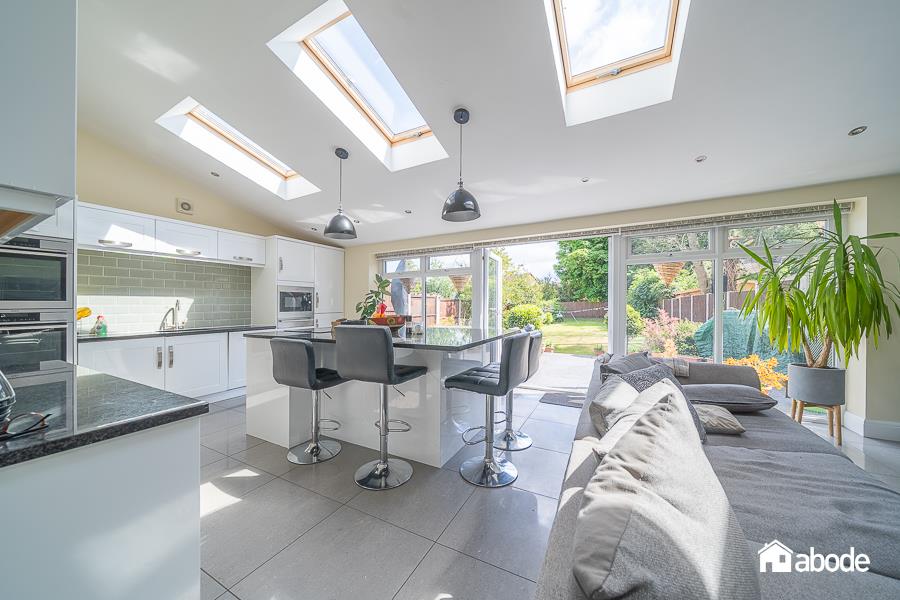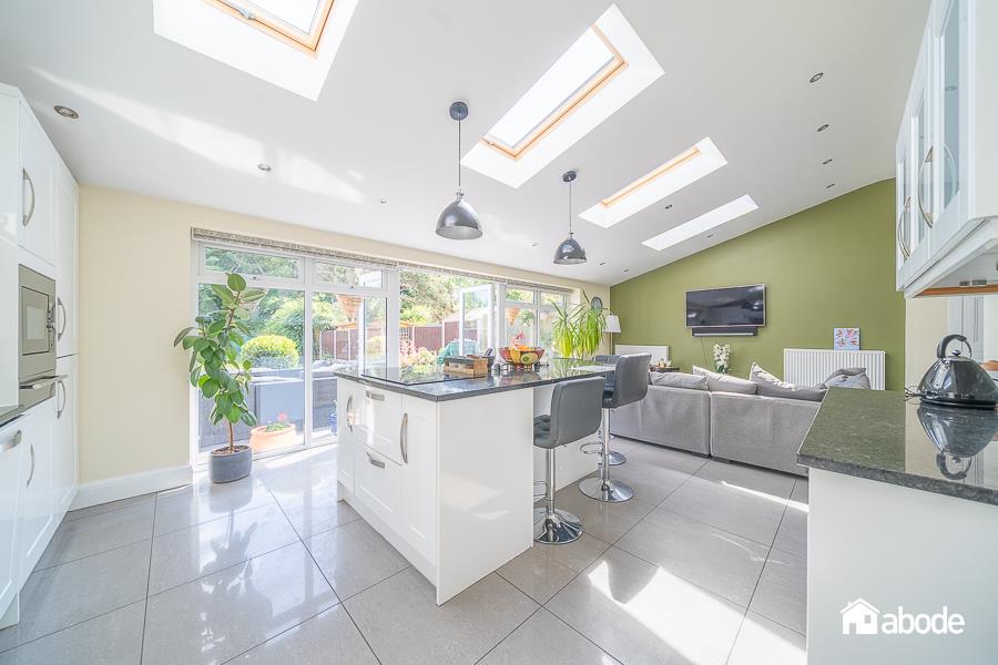 This charming and spacious family home is the perfect blend of character and modern convenience. With FIVE double bedrooms, including a generously sized top floor and multiple living spaces, it offers comfort and flexibility for family life. The ground floor boasts a cosy front living room with open fire, an office room, a downstairs shower room, and a remarkable rear extension that houses an open-plan kitchen and living area. The contemporary kitchen is complete with an island unit, seamlessly integrates with a dining/seating area, ideal for family gatherings or entertaining.