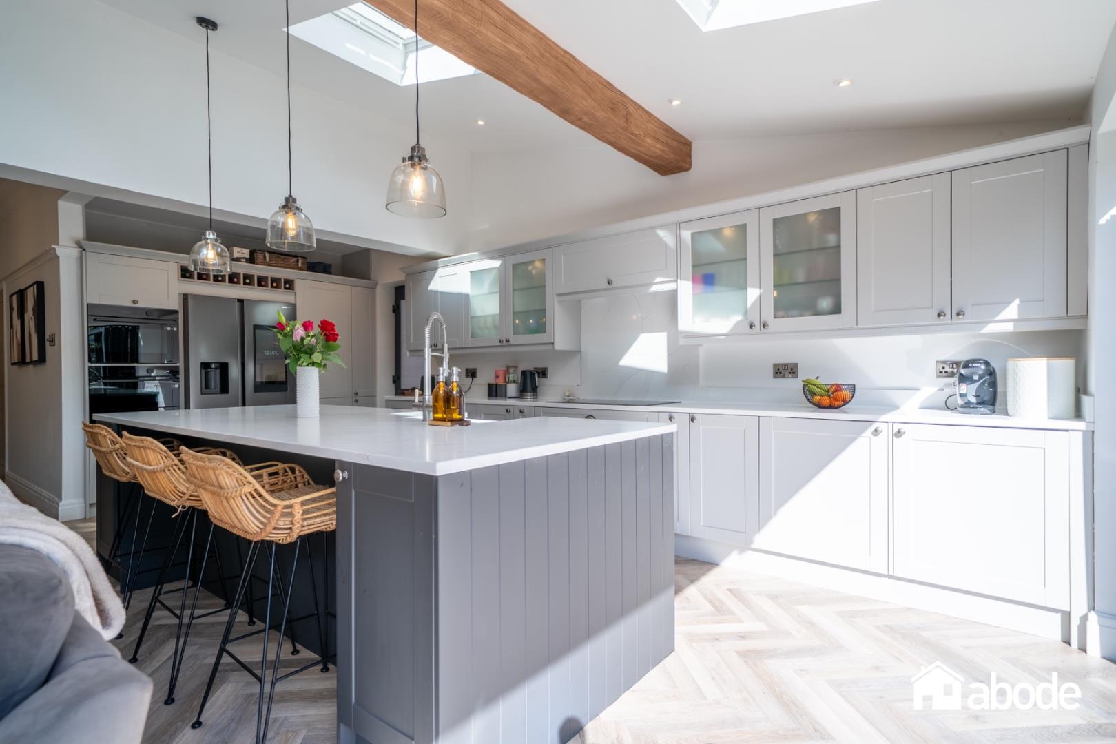 Externally, the property benefits from ample off-road parking to the front and beautifully landscaped gardens to the rear. A particular highlight is the detached home office, bar and lounge, providing a versatile additional space that can be used for working, entertaining or simply relaxing.