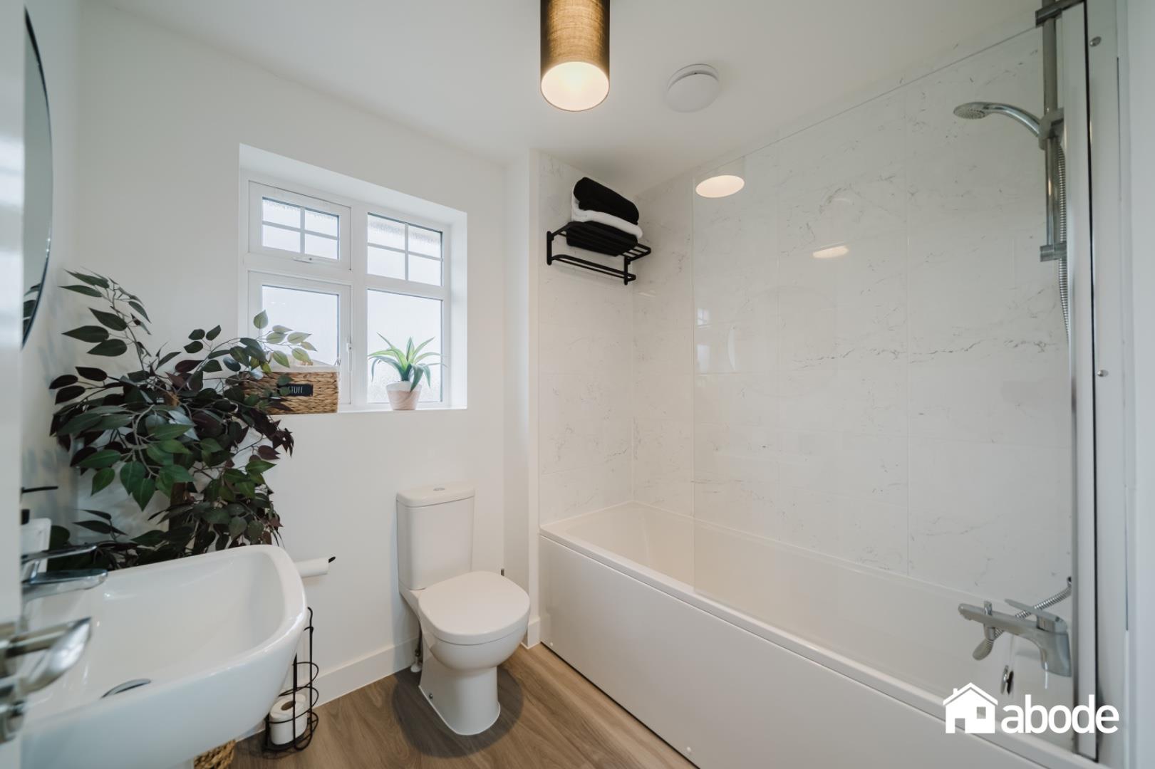 To the first floor are three generous double bedrooms, with the primary bedroom benefitting from a modern en-suite shower room. A contemporary family bathroom serves the remaining bedrooms and completes the internal layout.