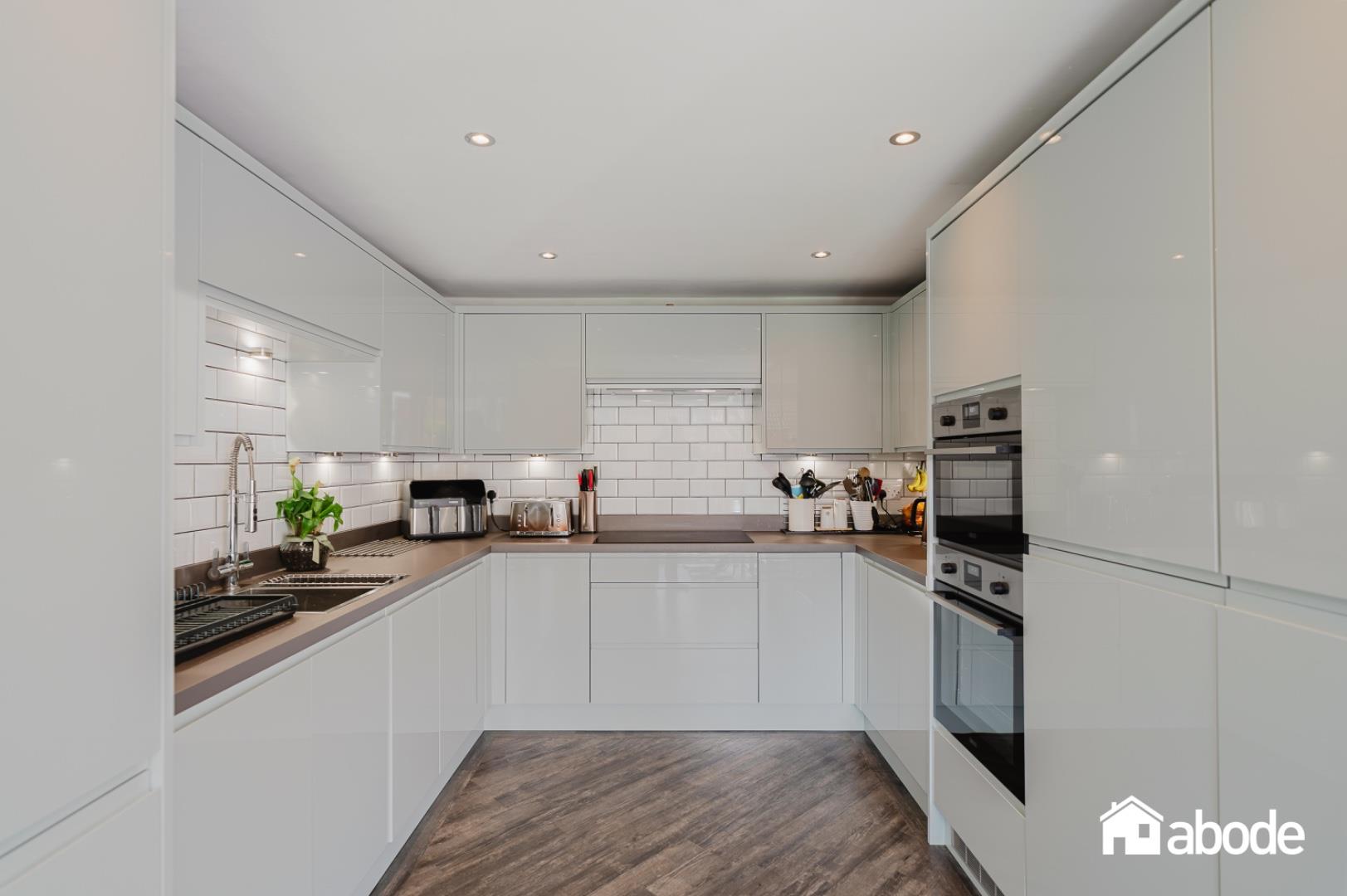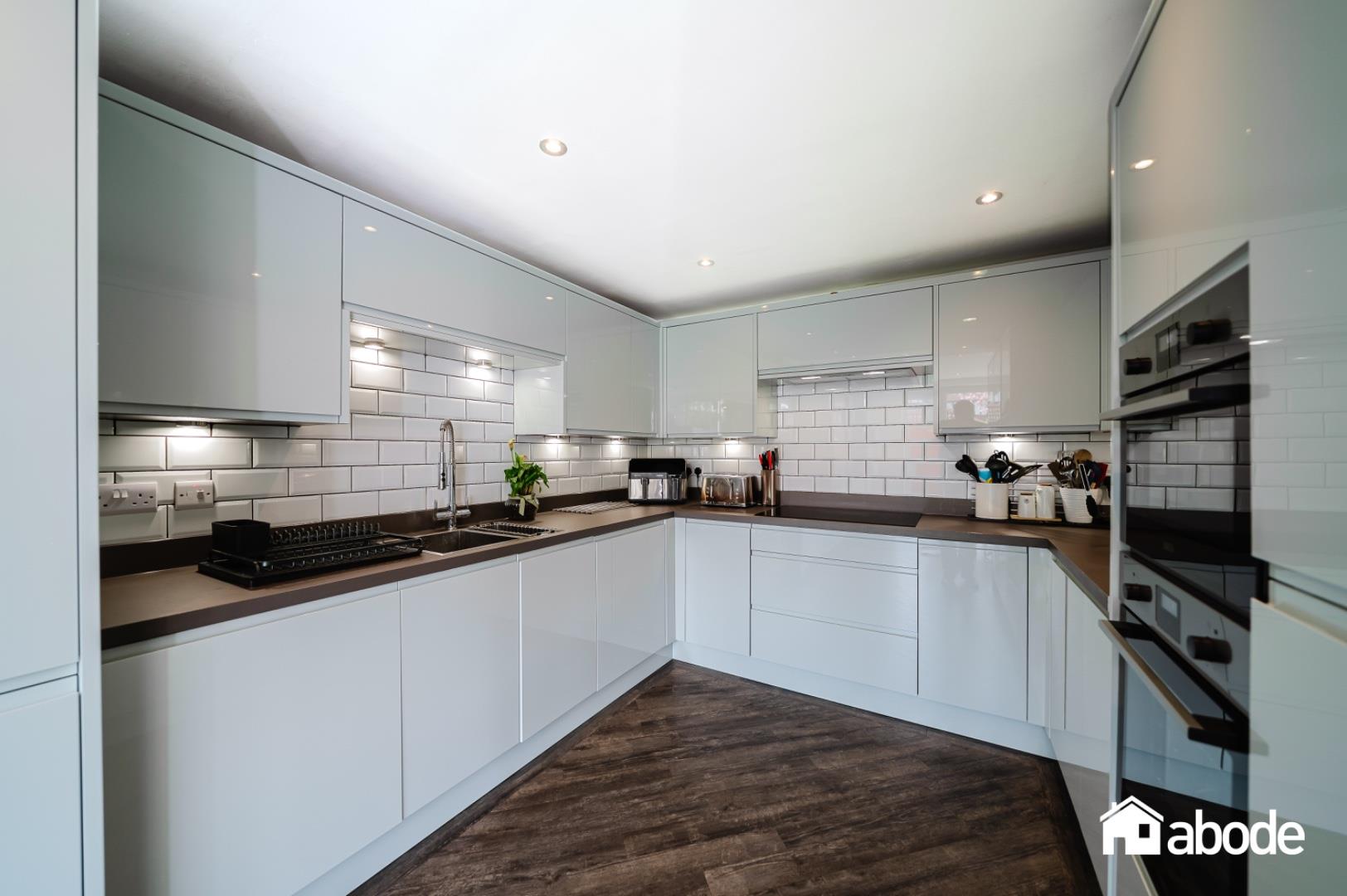 The kitchen itself is finished to a high specification, boasting stylish light blue/grey units, complementary work surfaces, and a full range of integrated appliances. Amtico flooring runs throughout, adding both durability and a sleek finish. Notably, the kitchen has been installed within the last two years, and the boiler has been recently replaced, offering peace of mind to prospective buyers.
