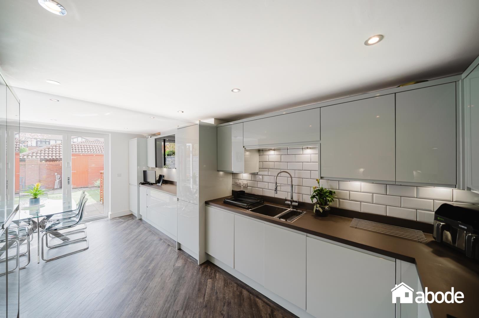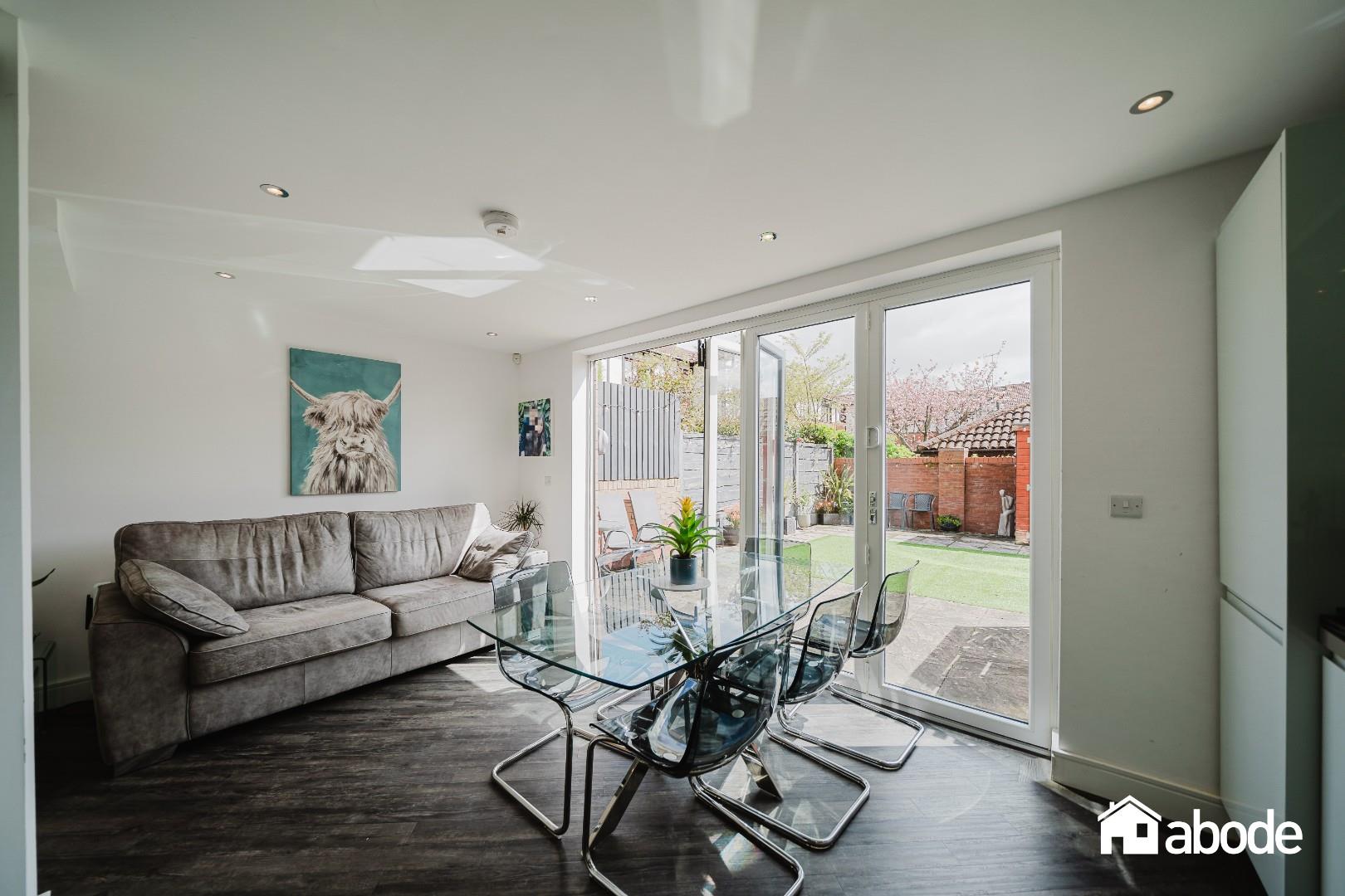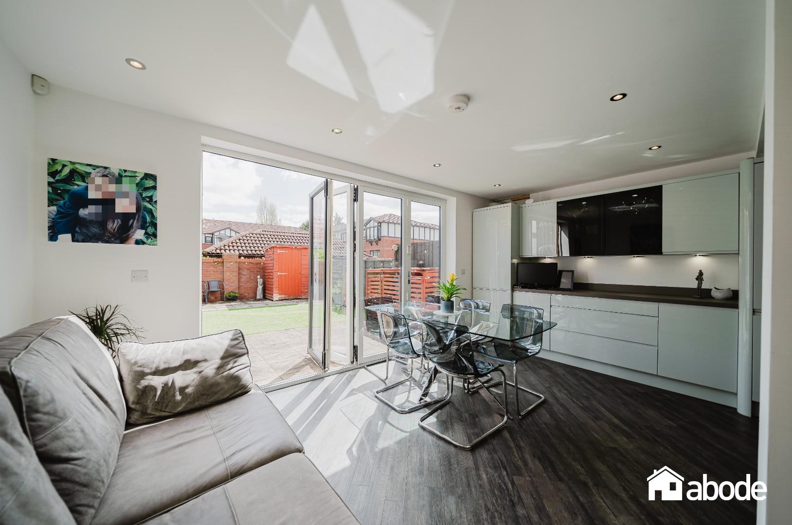 Upon entering, you are welcomed by a bright entrance hallway with a convenient ground floor W.C. The integral garage has been cleverly converted to provide a useful utility room and additional storage space, adding to the home’s versatility. To the rear, the property truly comes into its own with a stunning extended L-shaped kitchen and dining space. This contemporary area is flooded with natural light, featuring bi-folding doors that open seamlessly onto the sunny rear garden, creating an ideal indoor-outdoor living environment.