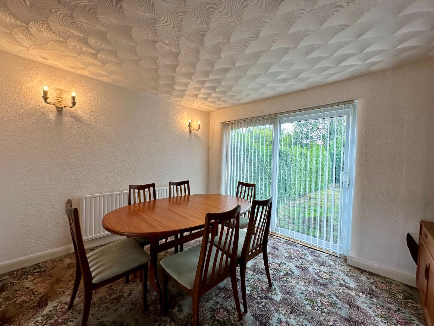 The accommodation includes an entrance hallway, a spacious lounge leading through to the dining room with patio doors opening onto the large rear garden, and a breakfast kitchen also offering garden access. Upstairs features three well-proportioned bedrooms, a shower room, and a separate W.C.
