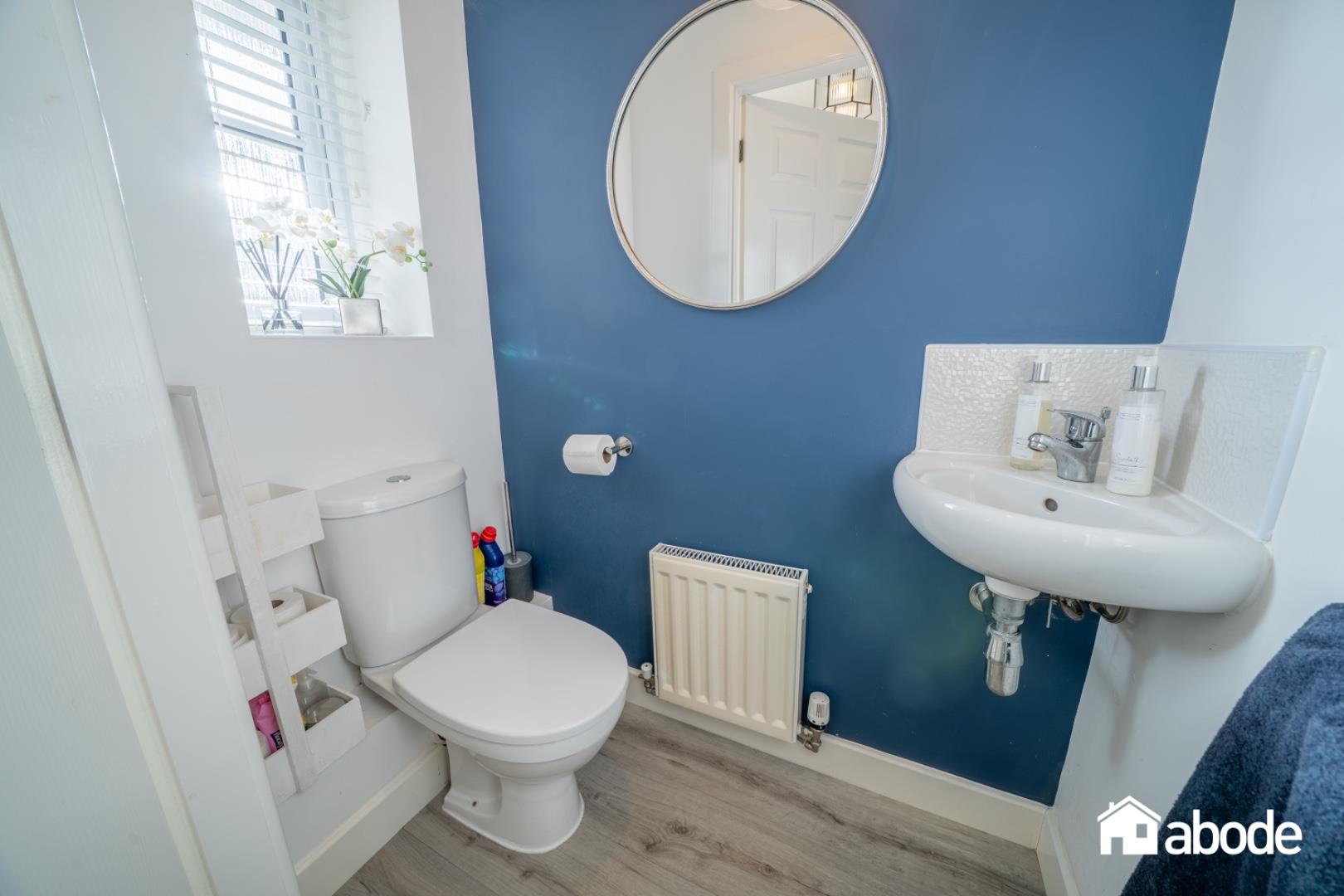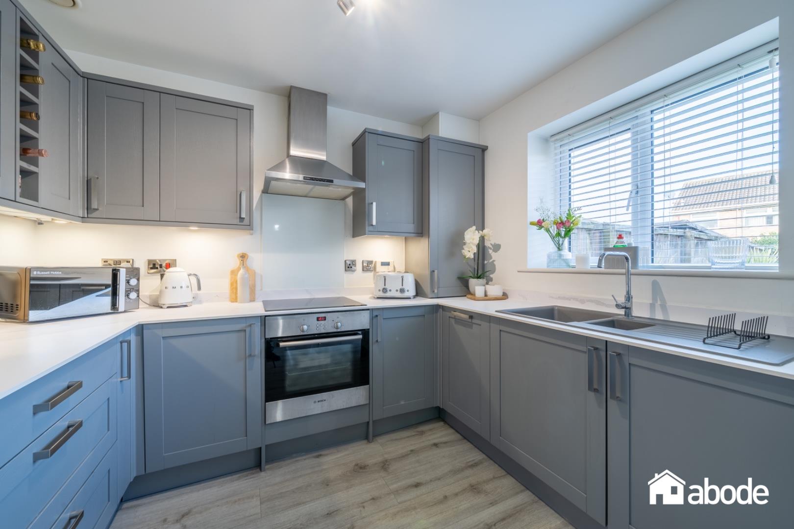 The accommodation is beautifully presented throughout and briefly comprises: a welcoming porch, ground floor W.C., and a spacious lounge leading through to a contemporary open-plan kitchen and dining area. The kitchen is well-appointed with modern units and integrated appliances, while French doors open directly onto the landscaped rear garden, creating an ideal space for both everyday living and entertaining.