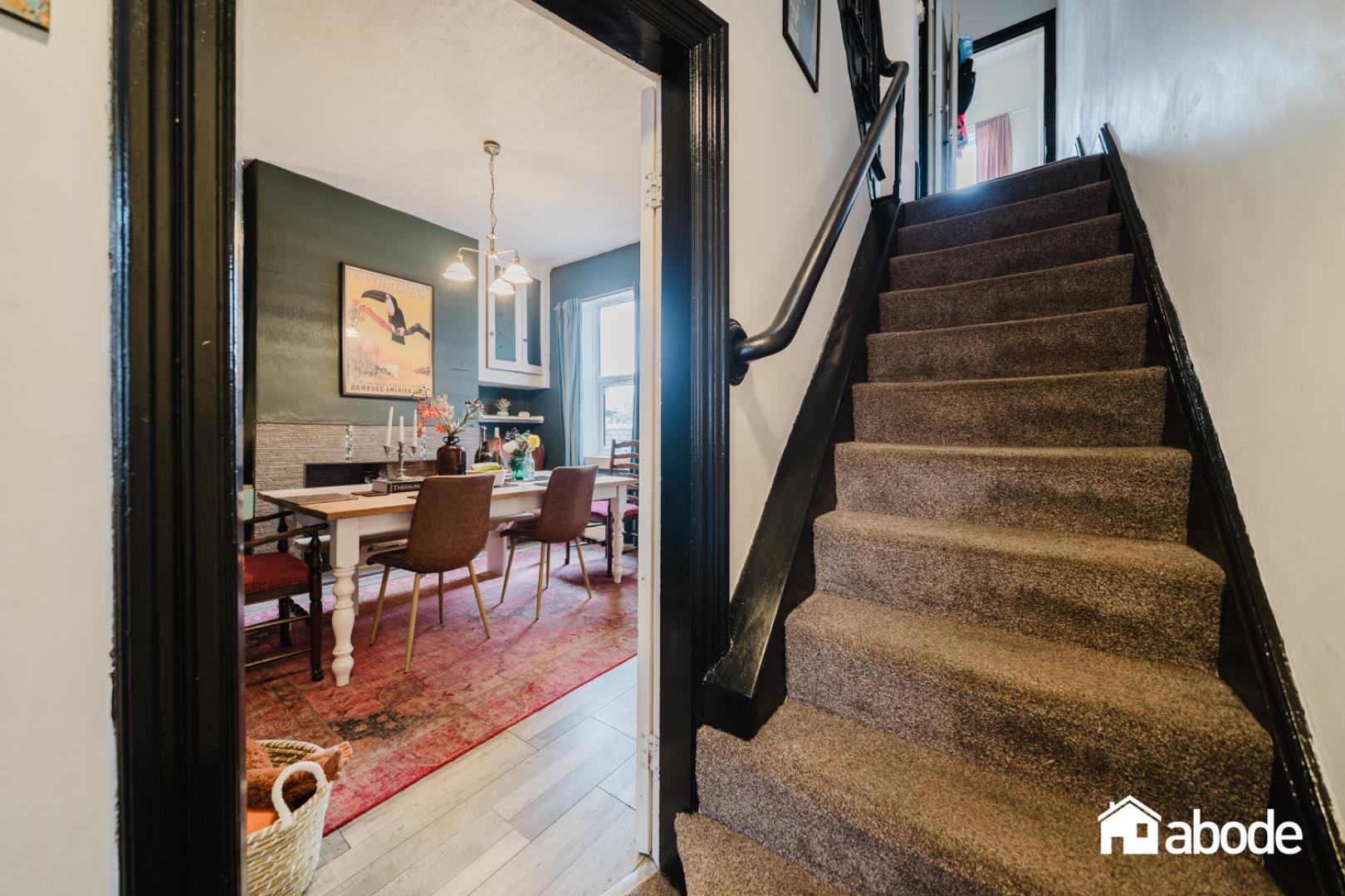 Retaining a wealth of original and ornate features, the property immediately impresses with its attractive storm porch leading into a welcoming entrance hallway, setting the tone for the character and warmth found throughout. To the front, a delightful lounge boasts a beautiful bay window flooding the room with natural light, complemented by an electric fire. The separate dining room offers an ideal space for entertaining, enhanced by a charming log burner for those cooler evenings.
