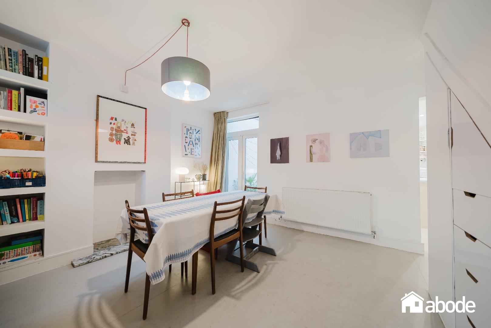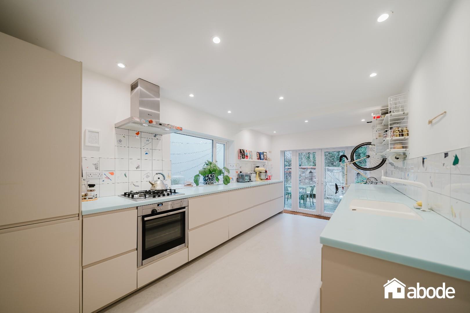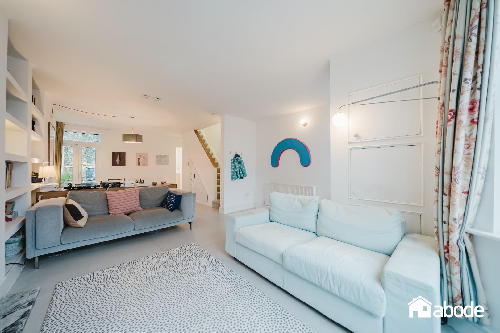 To the rear, a large and contemporary kitchen provides ample workspace and storage and benefits from integrated appliances, finished in a modern and tasteful style while retaining a wonderful sense of light and space. From the kitchen, French doors open onto a lovely, tiered courtyard/garden, offering an attractive and low-maintenance outdoor area ideal for al fresco dining and relaxation.