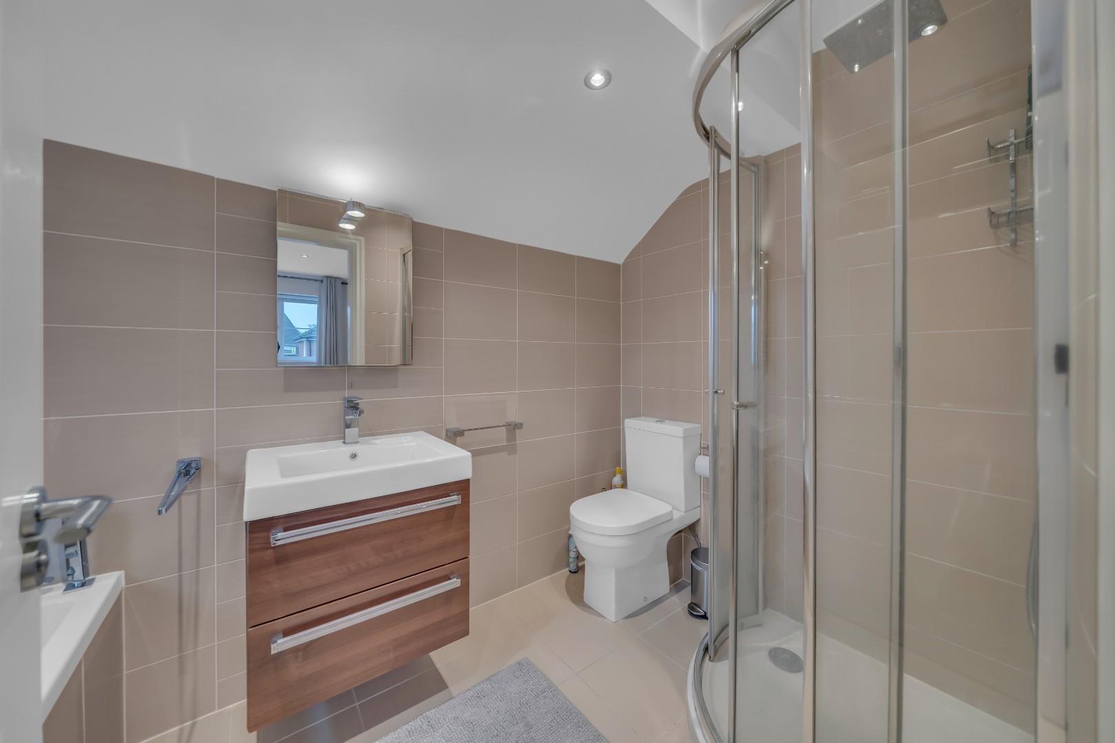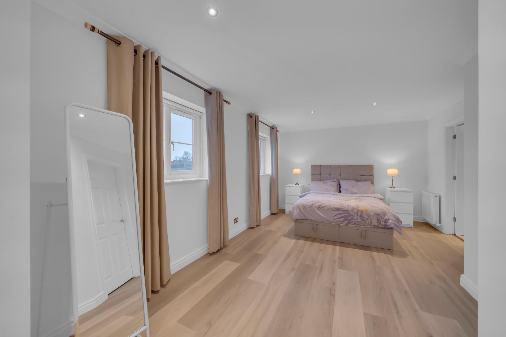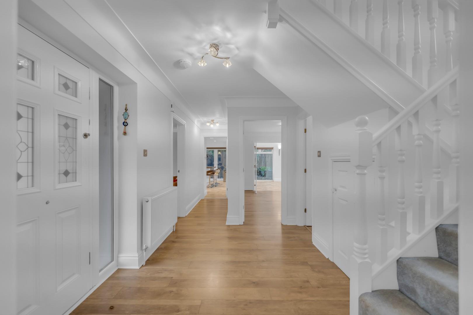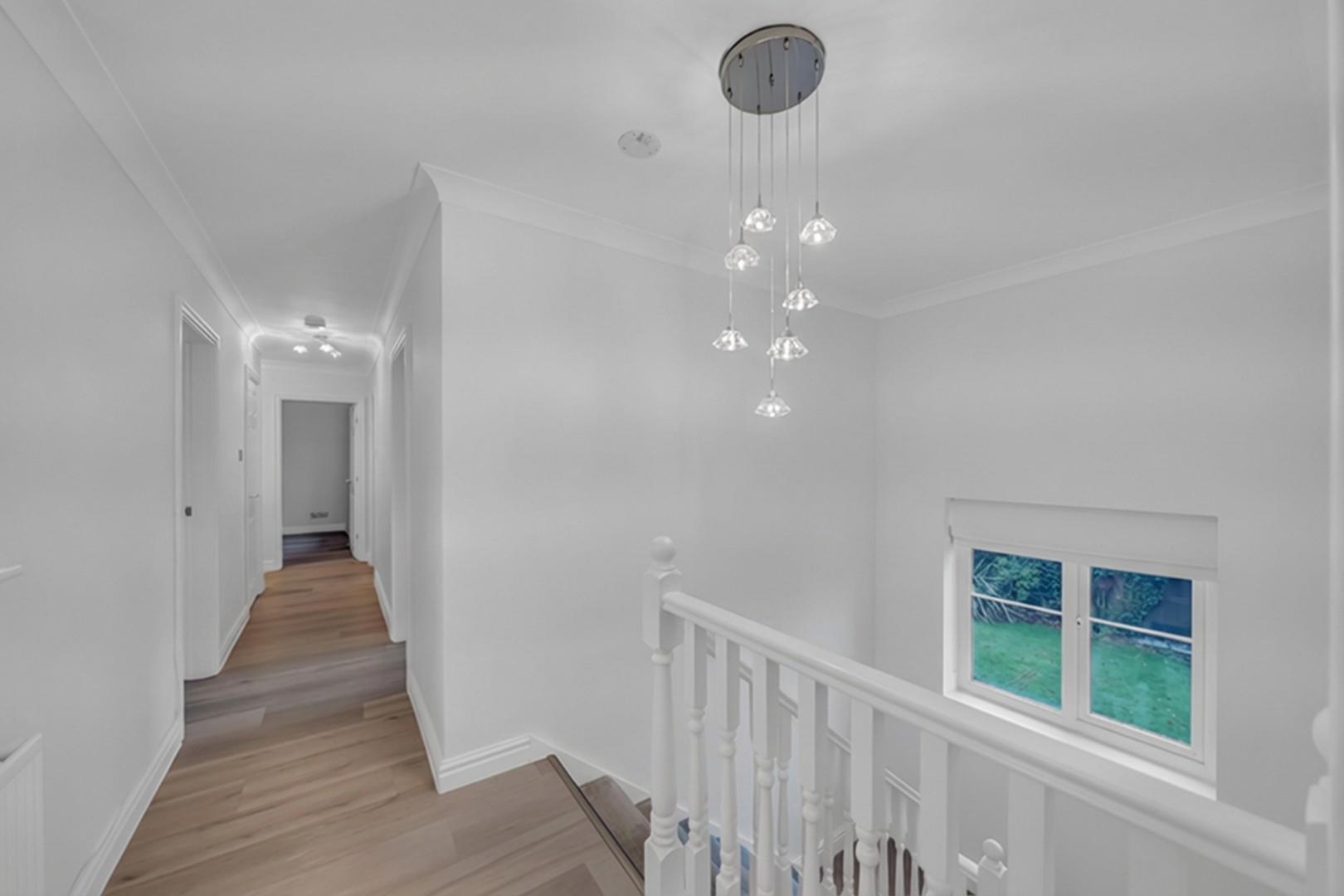 Upstairs, the sense of space and style continues. The first floor offers a fabulous guest suite, complete with a large bedroom, private en-suite shower room, and its own dressing area. There are three further generously sized bedrooms and a contemporary family bathroom. The show-stopping primary suite sits to the front beautifully bright and tranquil, with a spacious bedroom, stylish en-suite shower room, and a walk-in dressing.