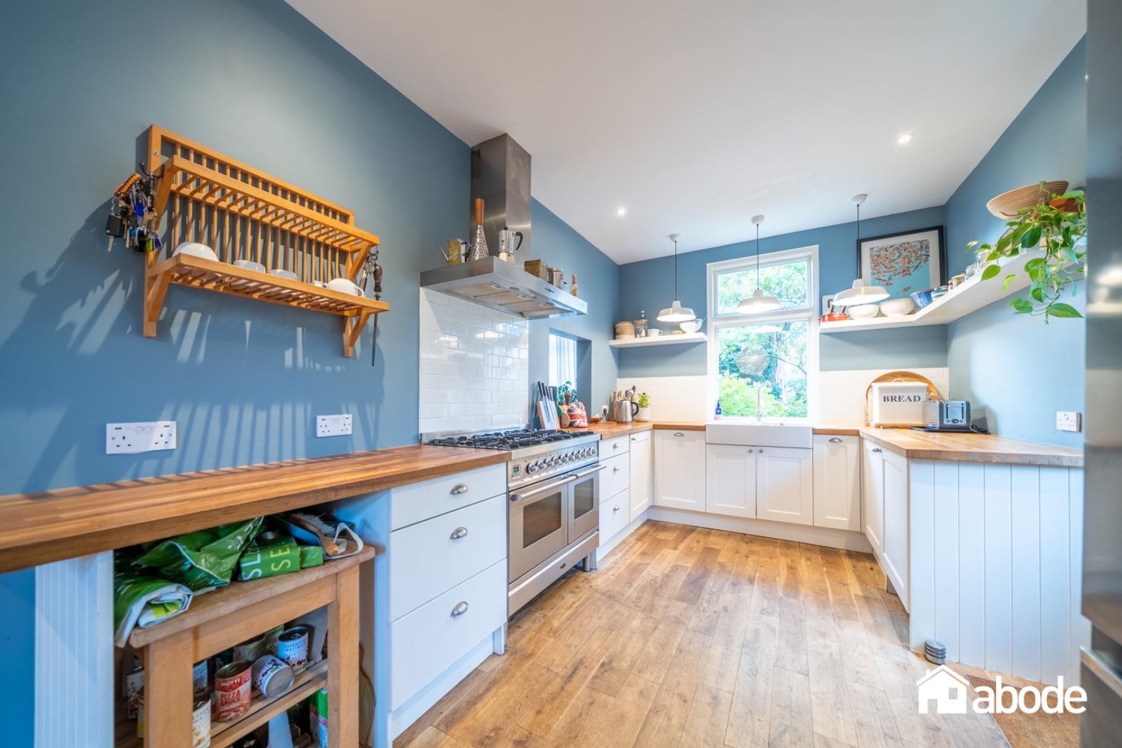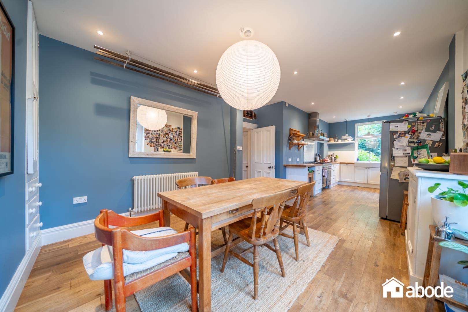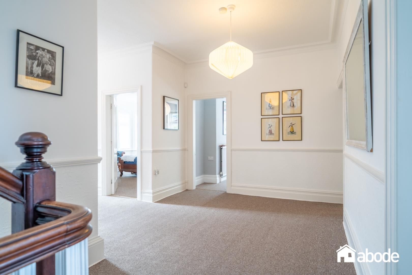 To the first floor, a split-level landing leads to five generously proportioned bedrooms, a well-appointed family bathroom, and a separate WC. The second floor provides additional flexible space, currently used as a creative studio and study, offering excellent potential for a variety of uses.