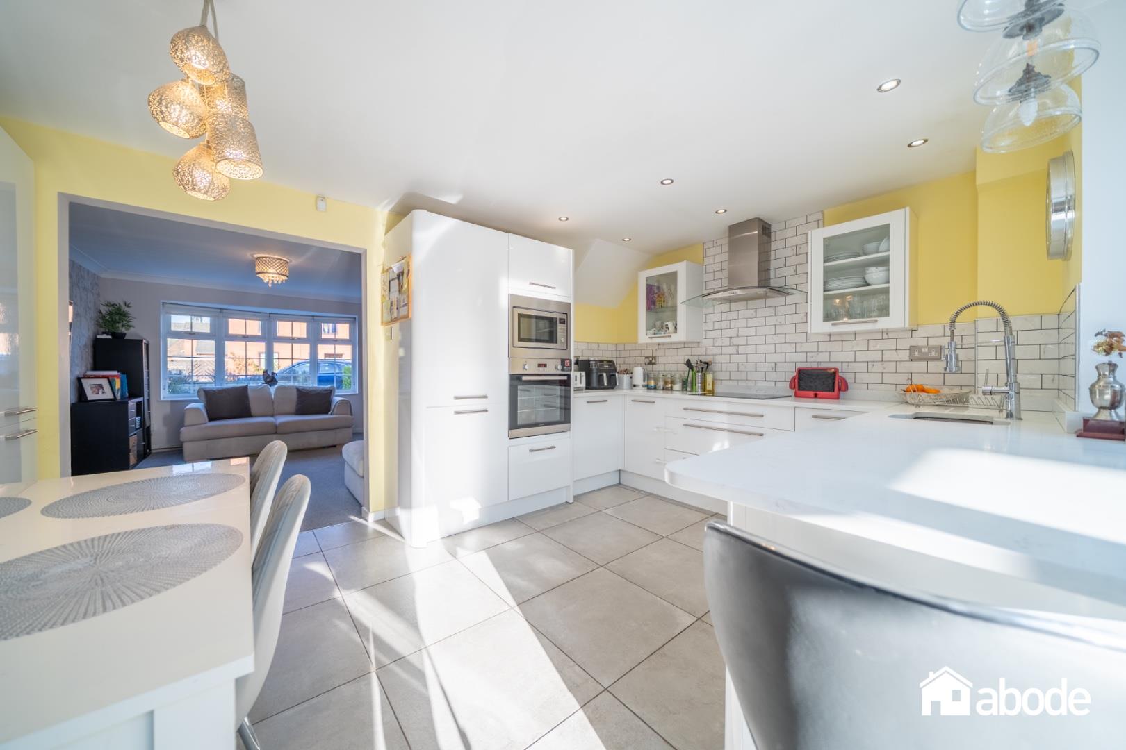 Upon entering, you are welcomed by a wide entrance hall that leads to an inviting front reception room. The bay-fronted living room is a delightful space, and an archway connects to the open-plan kitchen, dining, and extended living area, complete with underfloor heating. This creates an airy atmosphere that is perfect for modern living. Bi-fold doors provide direct access to the garden, making it an excellent spot for al fresco dining. Additionally, there is a convenient downstairs shower room and WC.