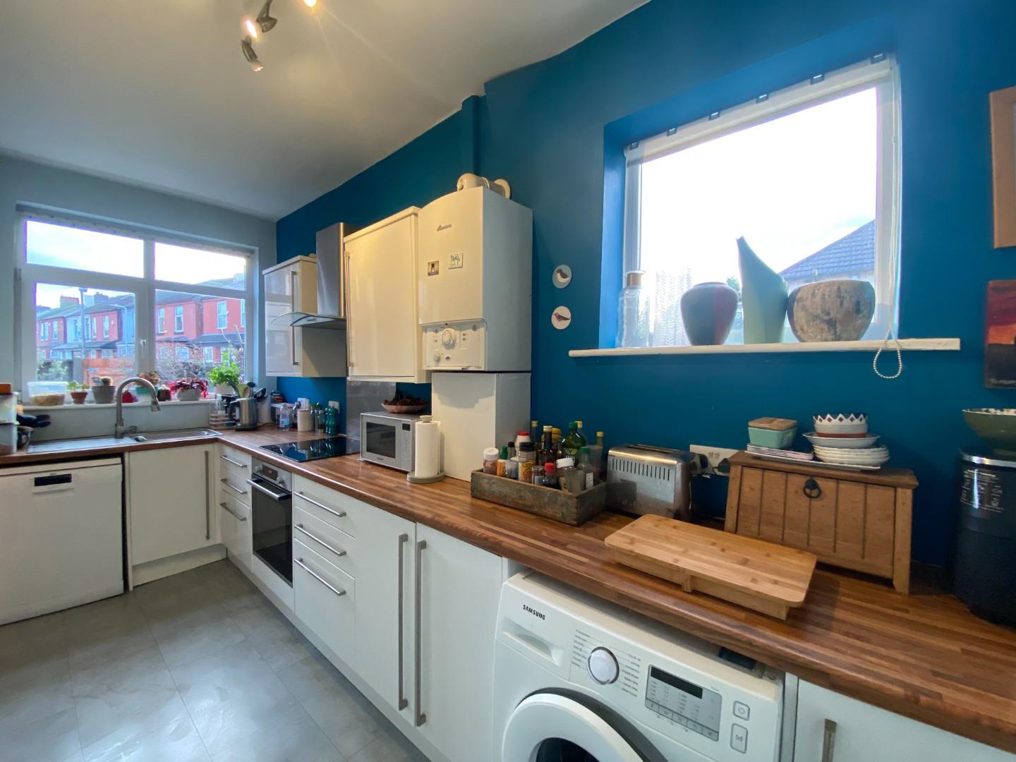 The ground floor boasts two inviting reception rooms, perfect for both relaxation and entertaining. The lounge, enhanced by UPVC double-glazed doors, opens directly to the garden, flooding the space with natural light. The dining room, features an attractive bay window and the spacious kitchen is equipped with appliances. It is also conveniently plumbed for a washing machine and dishwasher.