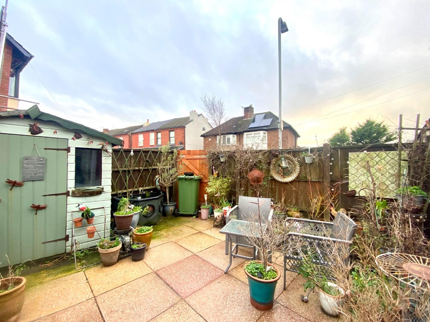 Outside, the property enjoys a corner position, featuring a front area and a rear town garden that is beautifully flagged and bordered. This outdoor space is complete with an outdoor tap, a timber shed with electric points and an attractive water feature, making it a perfect spot for enjoying the fresh air.