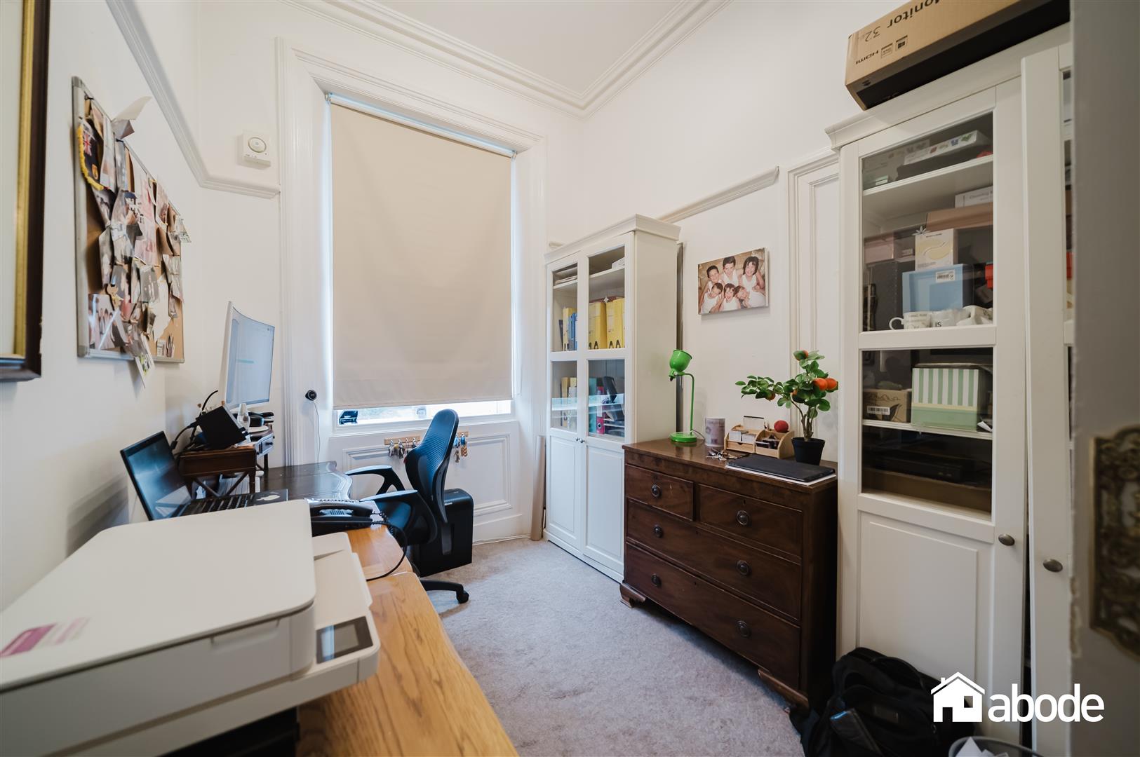 The second bedroom overlooks the 100ft rear gardens, this bed is also Super King-sized and the wardrobes are fitted . The smaller single bedroom is currently being used as a study but is big enough for a single bed or bunk beds.