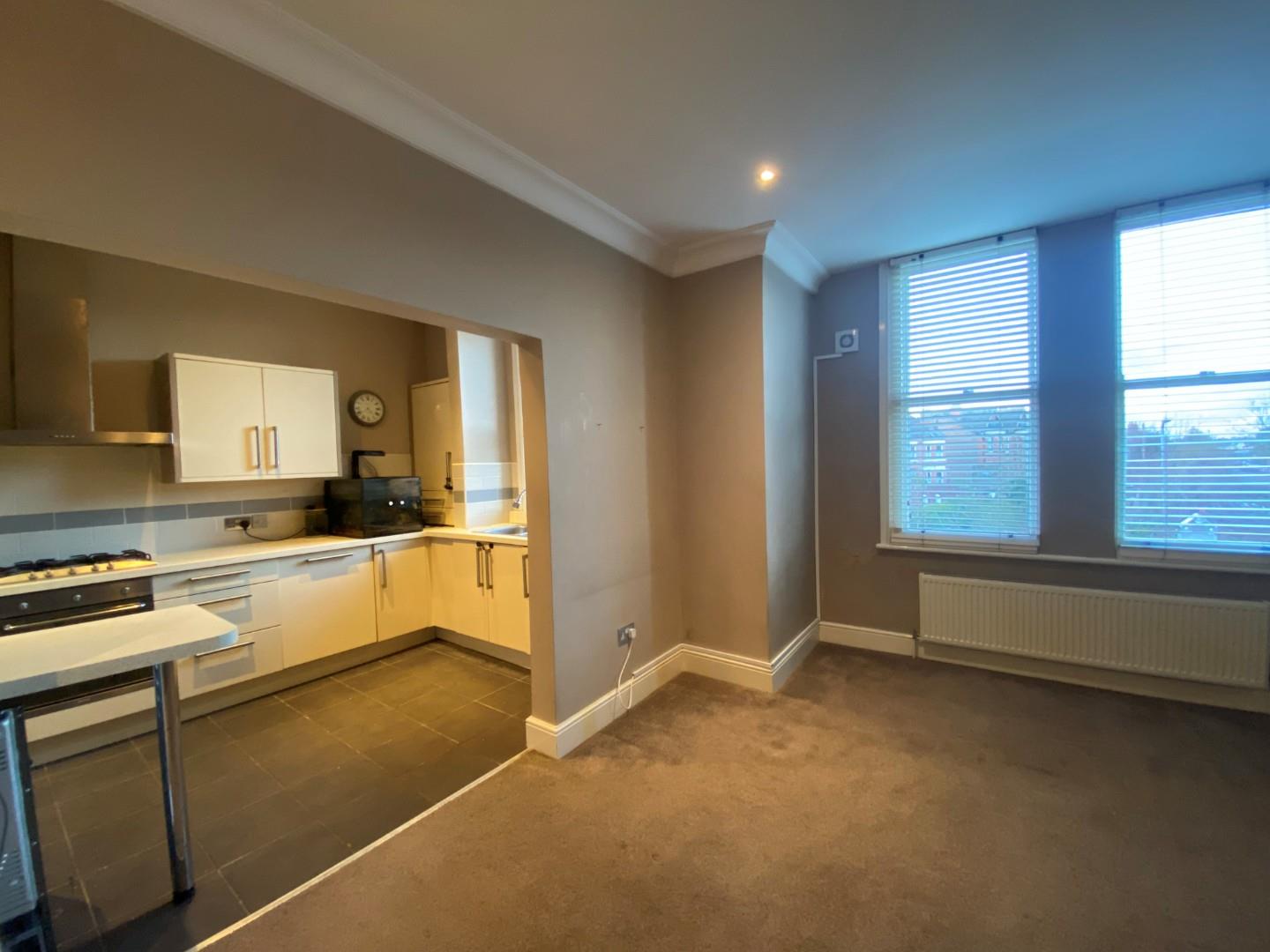 The flat features a spacious reception room that invites natural light, creating a warm and welcoming atmosphere. The well-equipped kitchen comes with essential white goods, making it easy to settle in and start enjoying your new home right away.