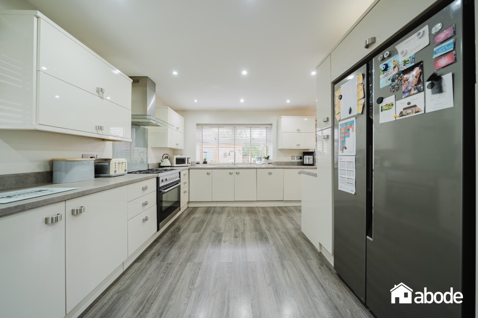 The heart of the home is the open-plan kitchen, dining, and seating area, which is designed for modern living and entertaining. This space is complemented by a separate utility room and a convenient WC, ensuring practicality for everyday life. The French doors seamlessly connect the interior to the south-west facing garden, allowing natural light to flood the home and providing a delightful view of the outdoor space.